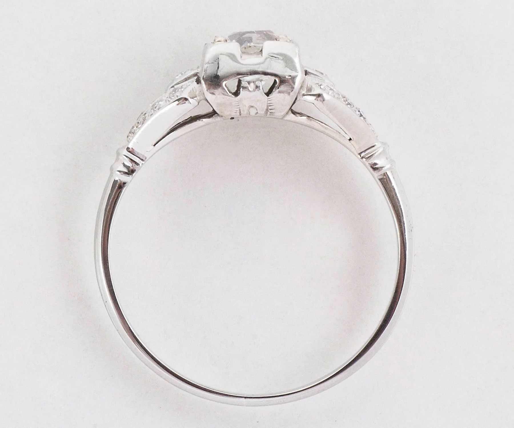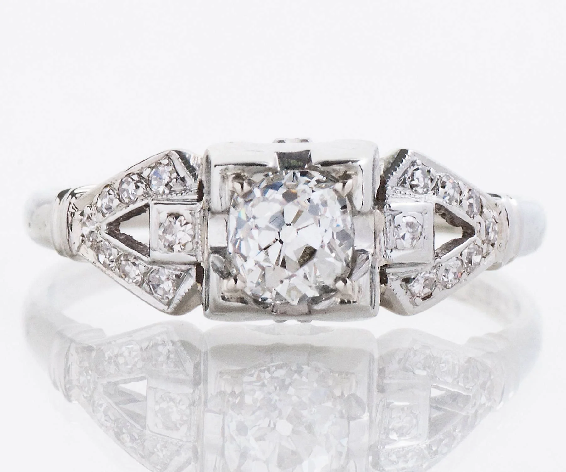 Antique Engagement Ring - Antique 1920's 18k White Gold Diamond Engagement Ring 18k White Gold European Cut Diamond =.47ct SI1/H Ring Size 5.5 (ring is sizable) Ring measures approximately 6.2mm at center, back of band is 1.5mm wide.