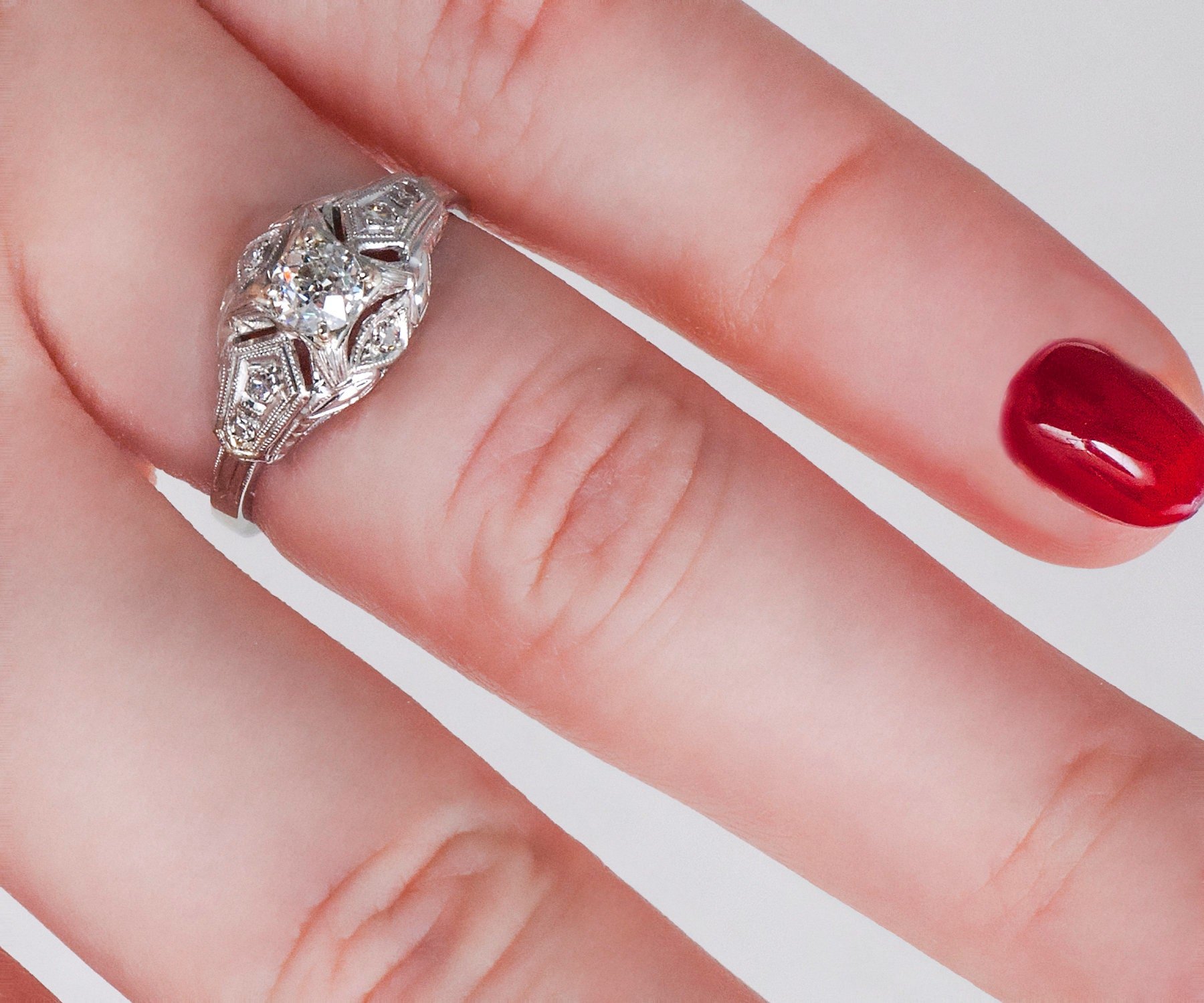Antique Engagement Ring - Antique 1920's 18k White Gold Diamond Engagement Ring