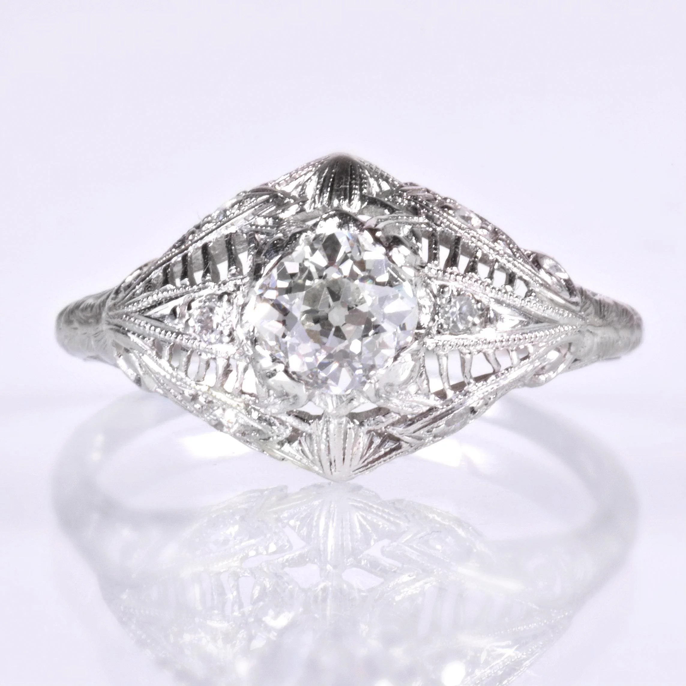 Antique Engagement Ring - Antique 1920's Platinum Diamond Filigree Engagement Ring