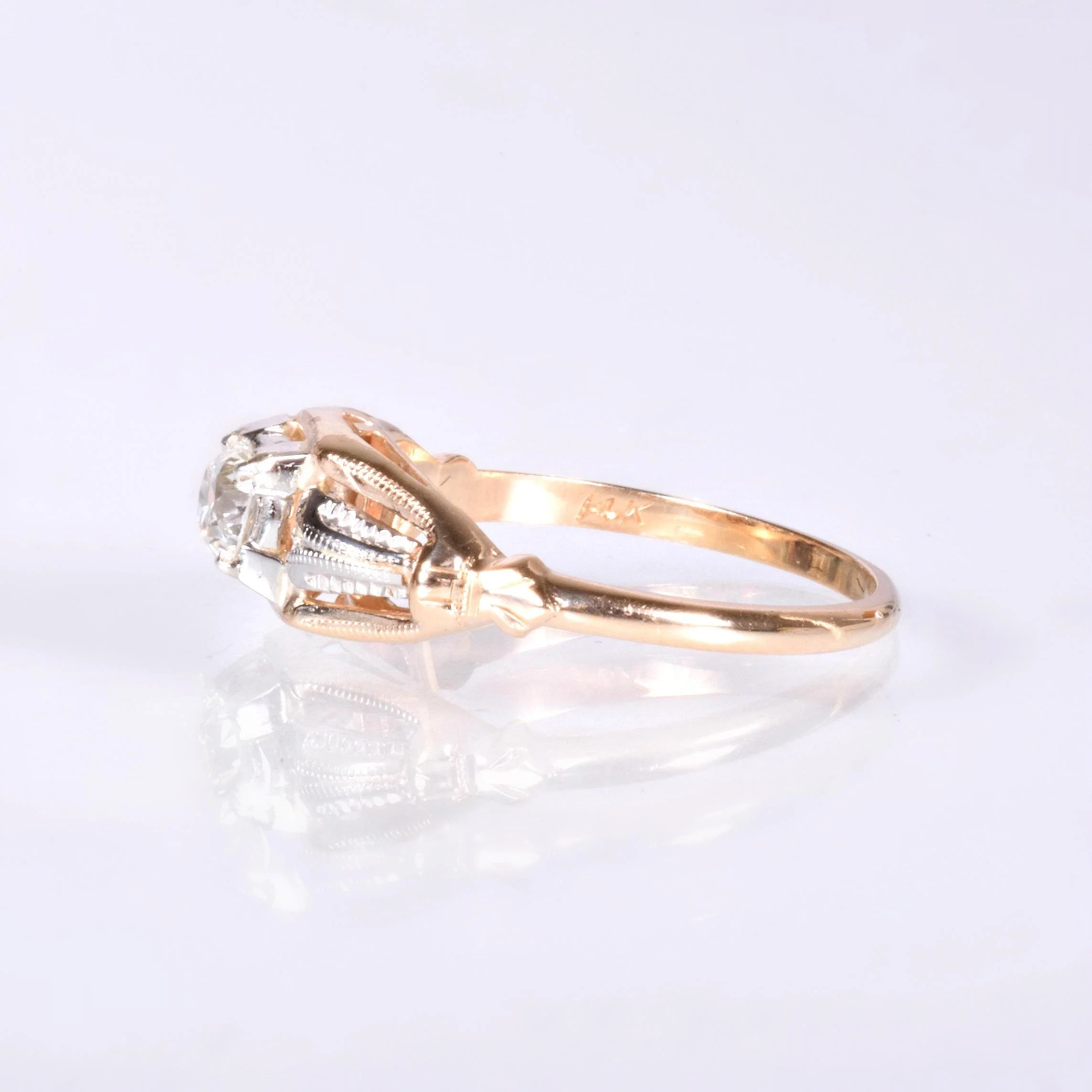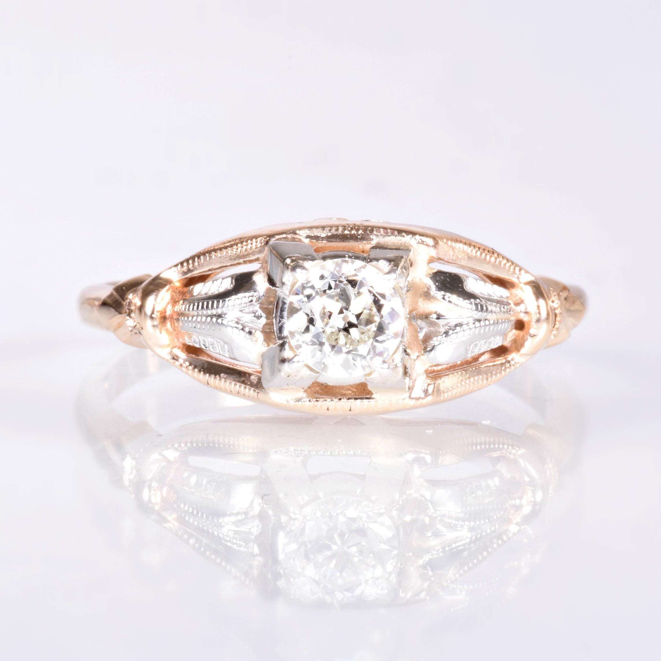 Antique Engagement Ring - Antique 1930's 14k Two-Tone Diamond Engagement Ring