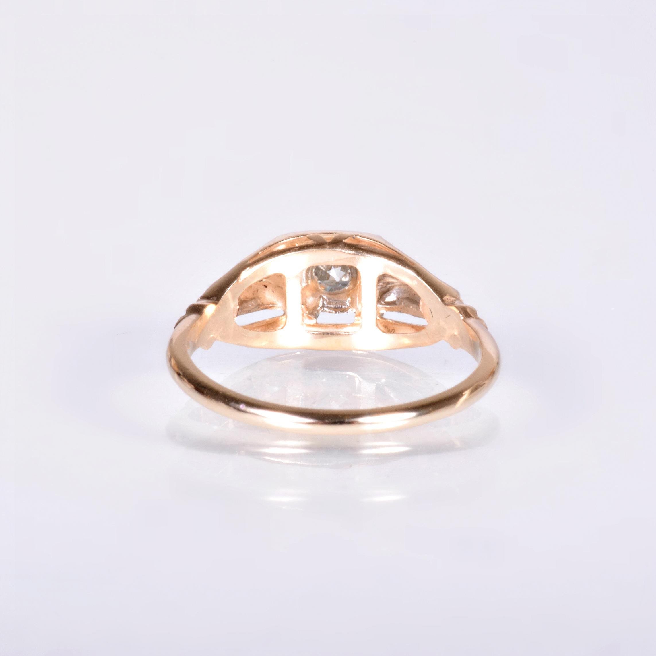 Antique Engagement Ring - Antique 1930's 14k Two-Tone Diamond Engagement Ring Circa 1930's 14k Yellow & White Gold European Cut Diamond =.29ct VS2/I Ring Size 5.5 (sizable) Ring measures approximately 6.9mm wide at center, back of band is 1.4mm wide.
