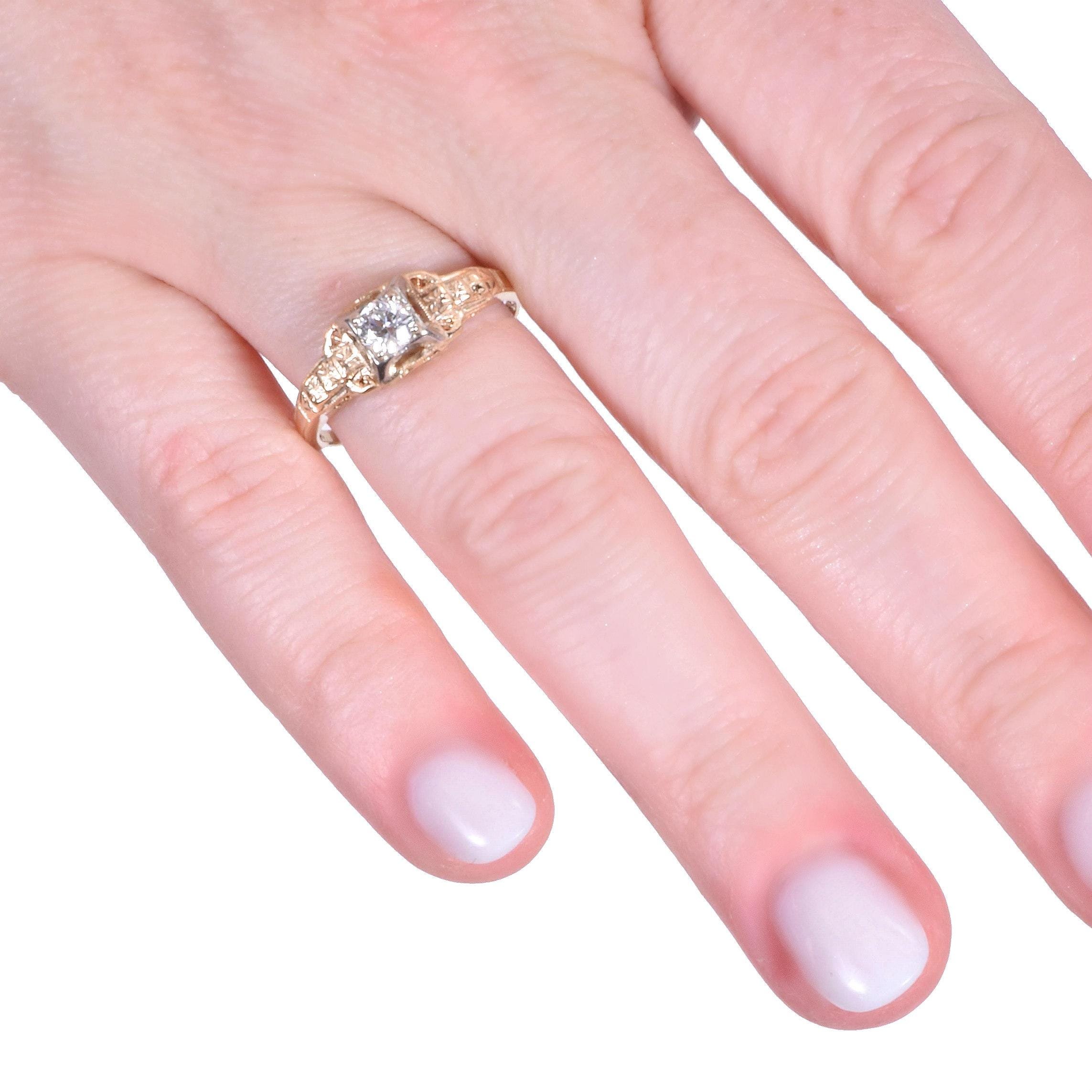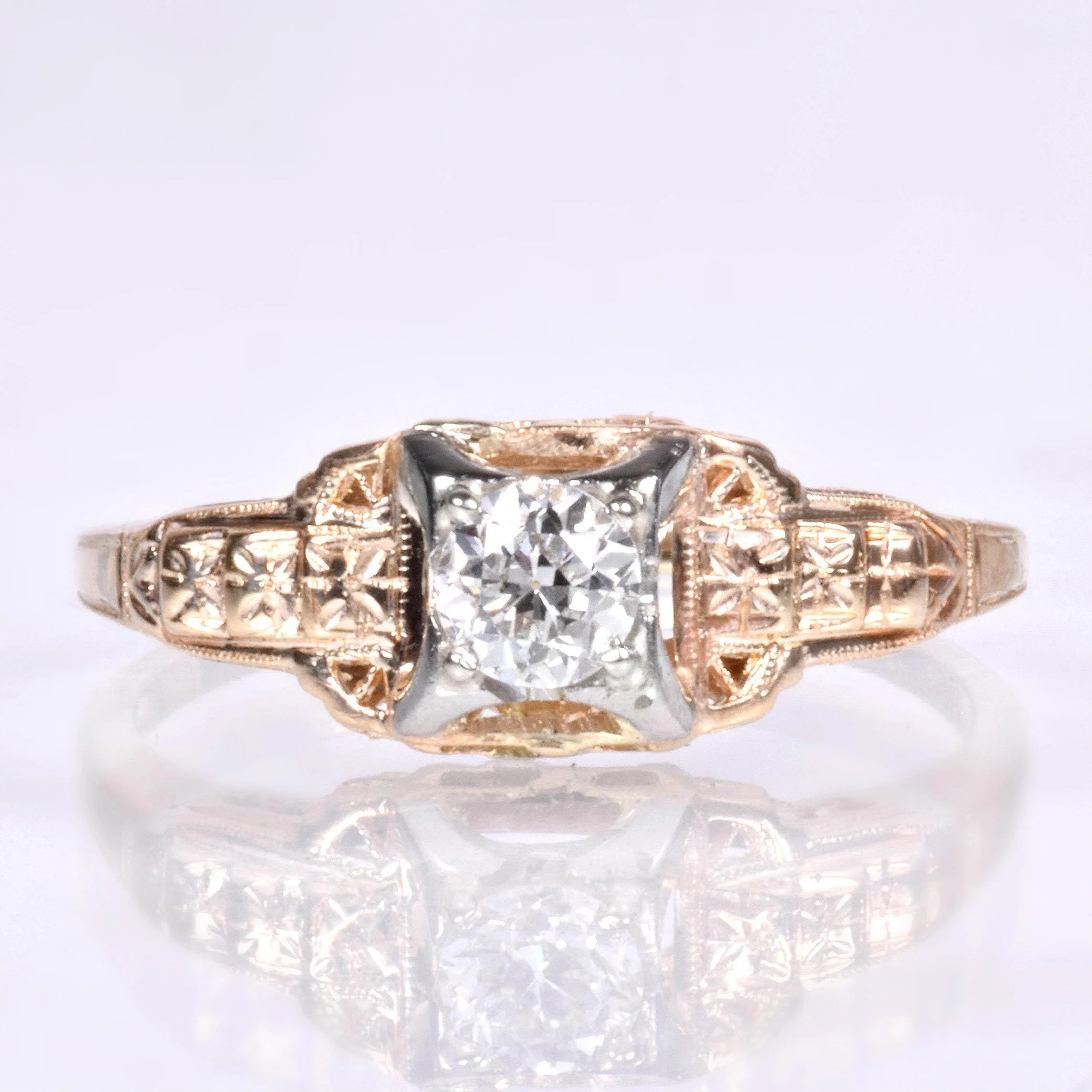 Antique Engagement Ring - Antique 1930's 14k Two-Tone Diamond Engagement Ring