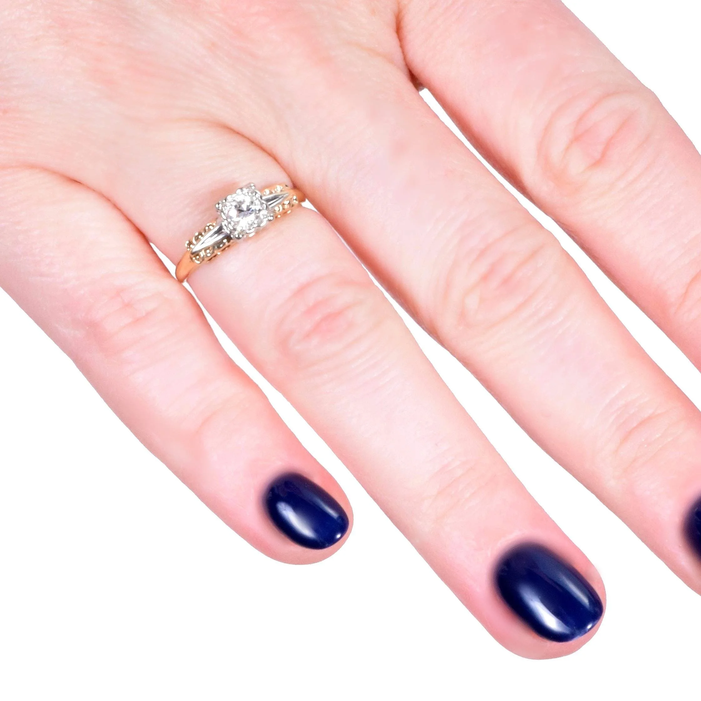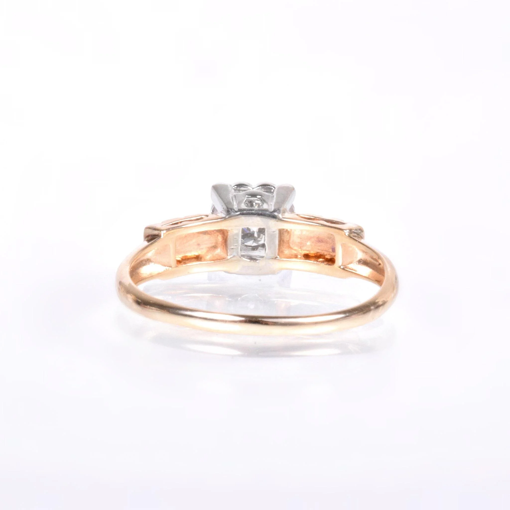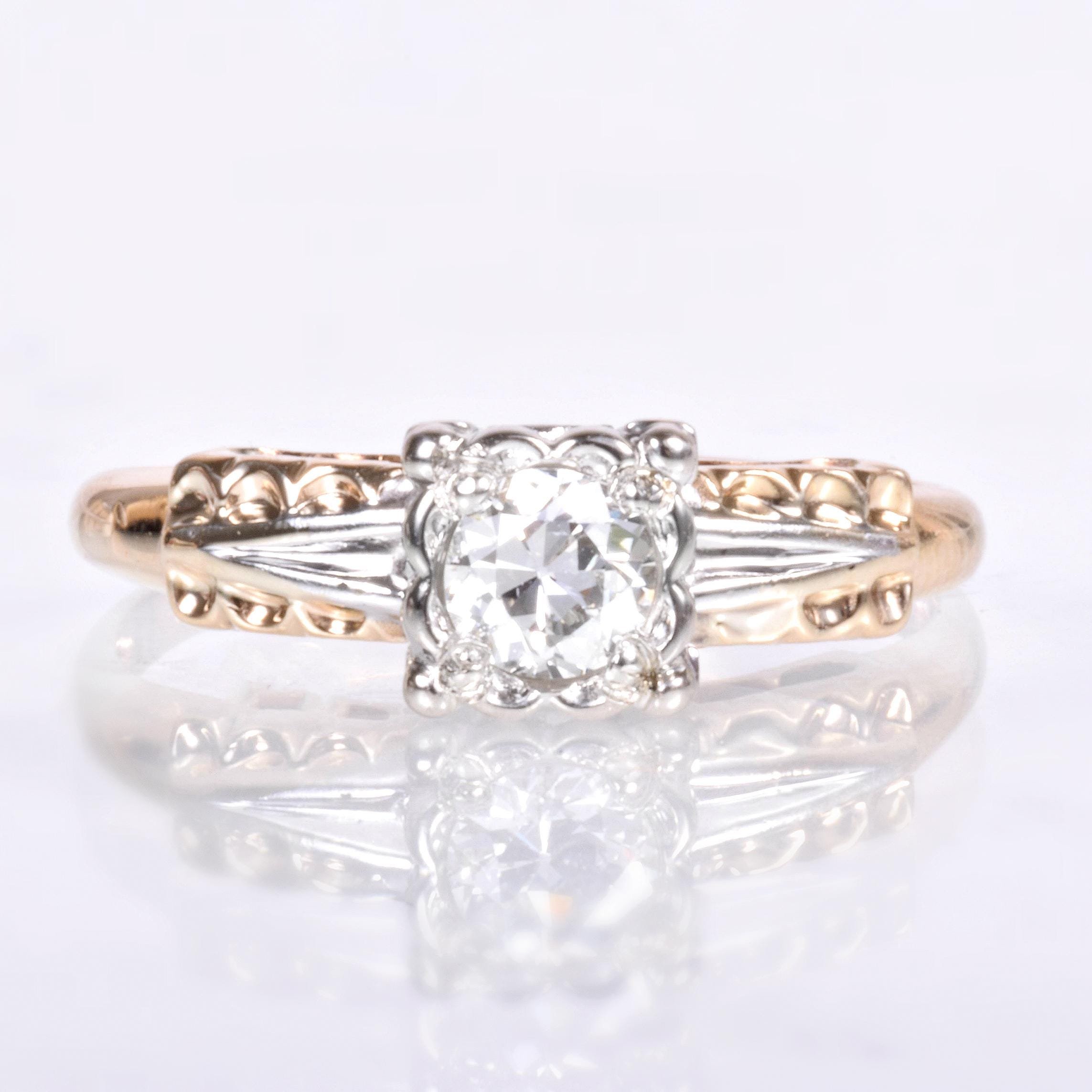 Antique Engagement Ring - Antique 1930's 14k Two-Tone Diamond Ring 1930's 14k Yellow & White Gold New Old Stock European Cut Diamond =.25ct VS1/G Ring Size 5 (sizable) Ring measures approximately 5.5mm wide at center, back of band is 1.3mm wide.