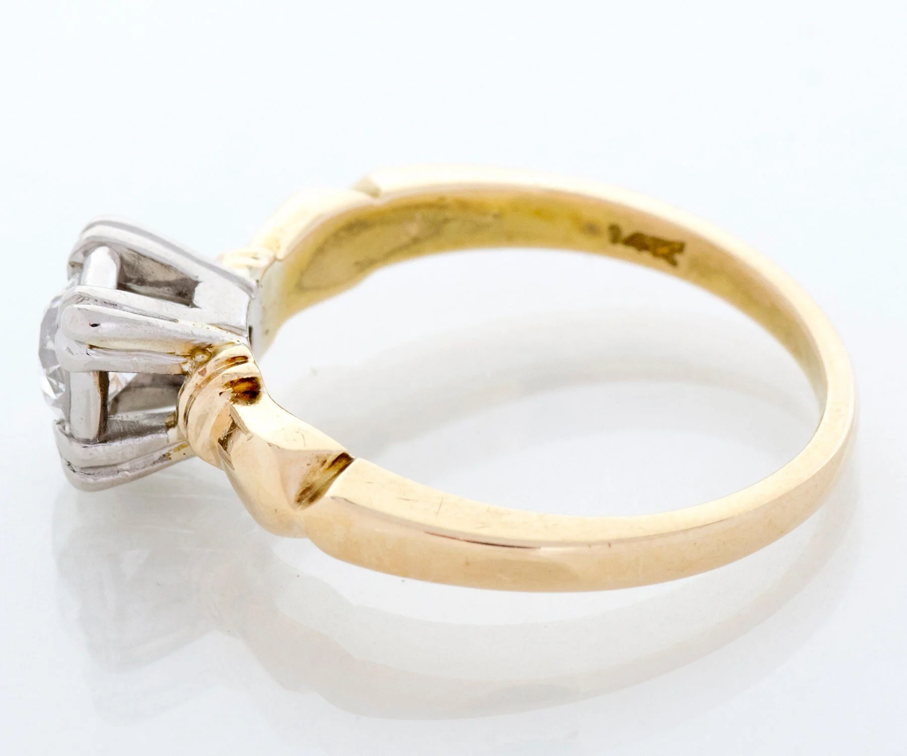 Antique Engagement Ring - Antique 1930's 14k Two-Tone European Cut Diamond Engagement Ring 1930's 14k Yellow & White Gold European Cut Diamond =.35ct I1/G Ring Size 5.25 (sizable) Ring measures approximately 6.1mm at center, back of band is 1.8mm wide.