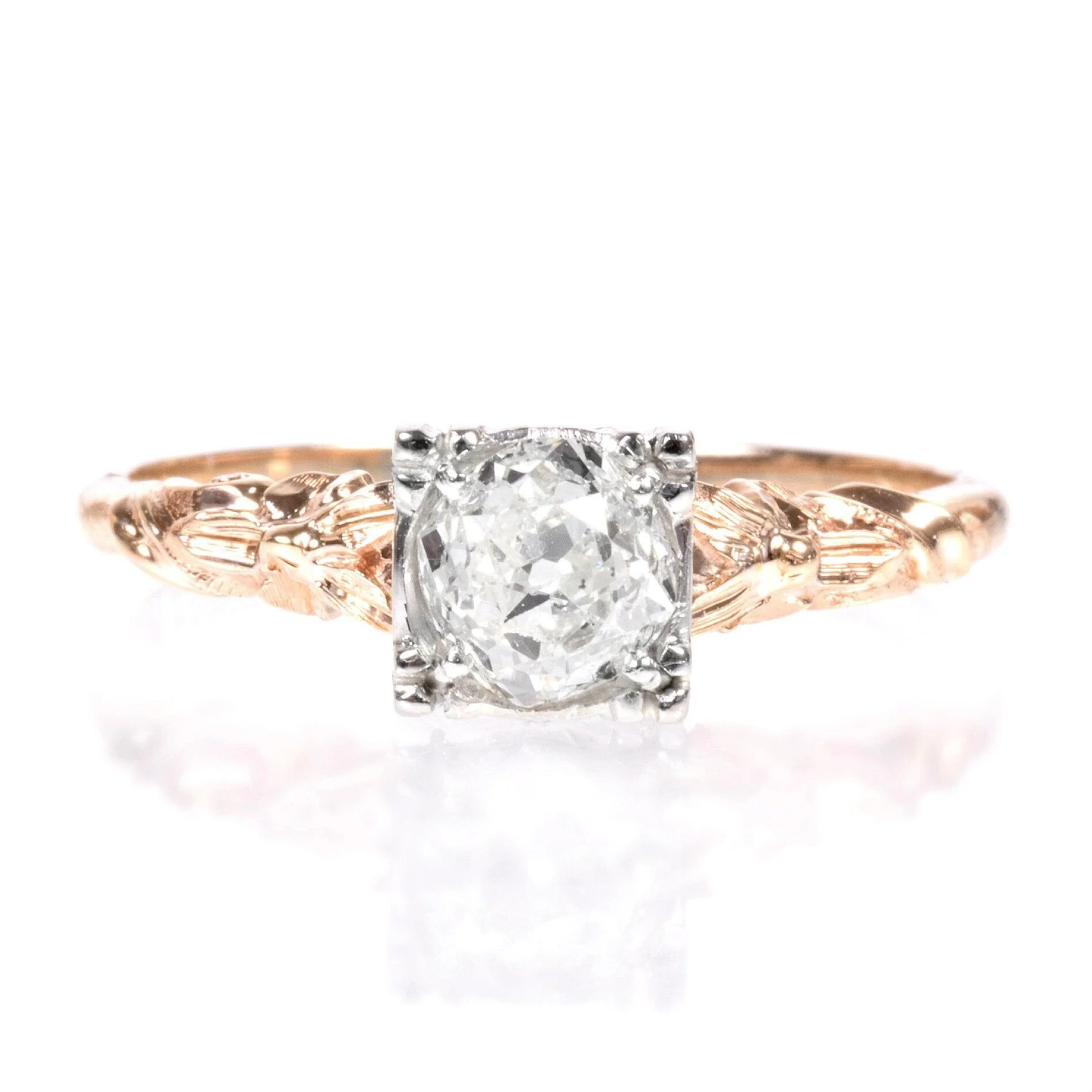 Antique Engagement Ring - Antique 1930's 14k Two-Tone Mine Cut Diamond Engagement Ring