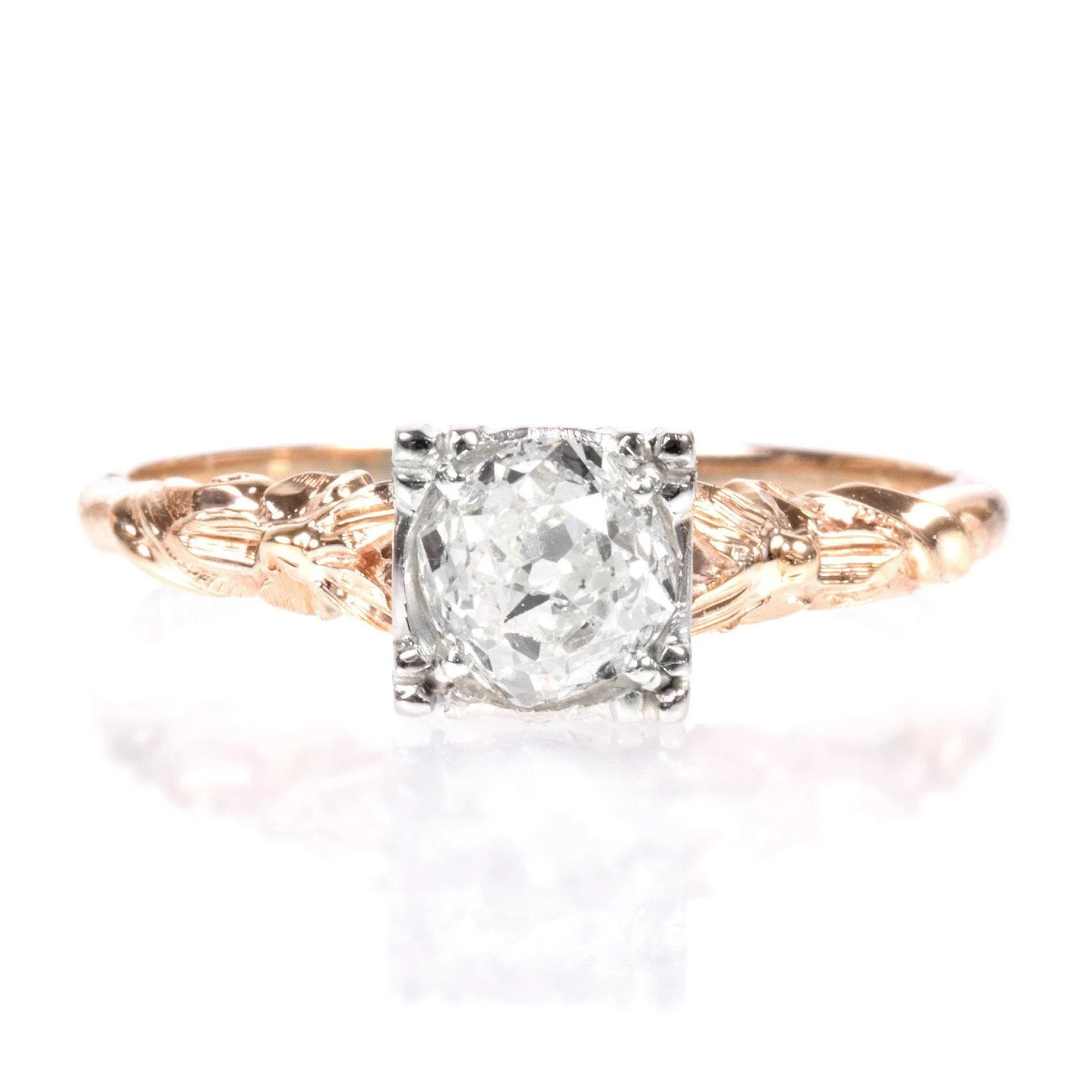 Antique Engagement Ring - Antique 1930's 14k Two-Tone Mine Cut Diamond Engagement Ring
