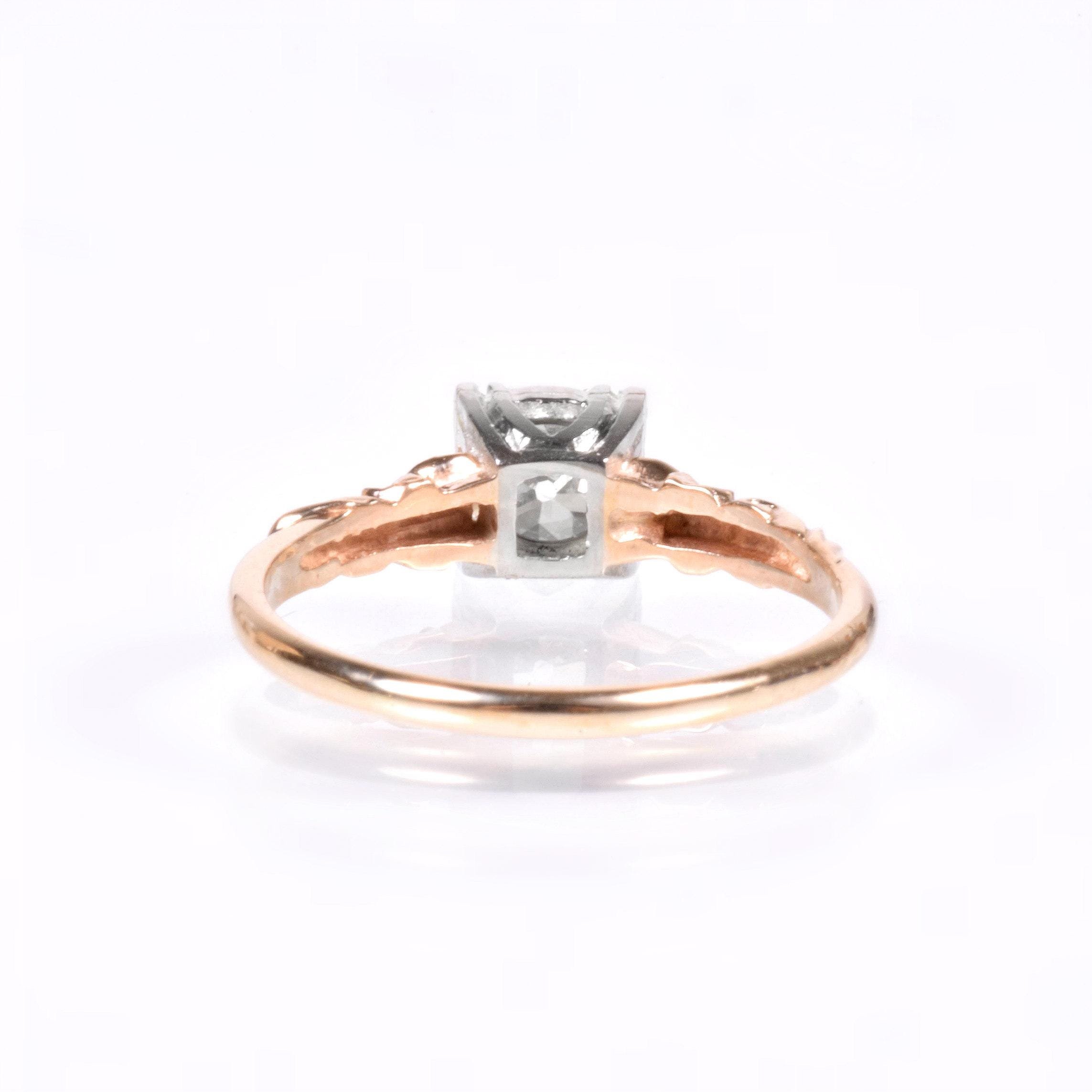 Antique Engagement Ring - Antique 1930's 14k Two-Tone Mine Cut Diamond Engagement Ring Circa 1930's 14k White & Yellow Gold Mine Cut Diamond =.62ct SI1/I Ring Size 6.5 (sizable) Ring measures approximately 5.8mm wide at center, back of band is 1.6mm wide. New Old Stock