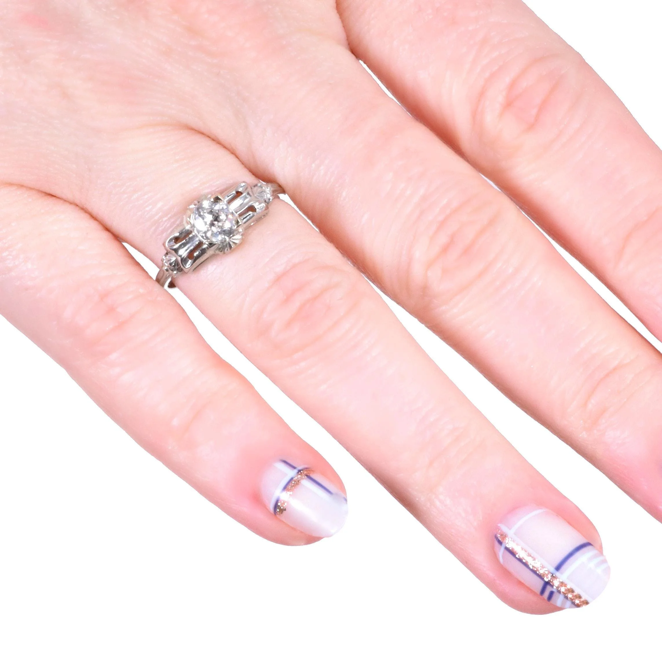 Antique Engagement Ring - Antique Art Deco 14k White Gold Diamond Engagement Ring 14k White Gold European Cut Diamond =.63ct VS2/G Ring Size 7 (sizable) Ring measures approximately 7.6mm wide at center, back of band is 1.4mm wide.
