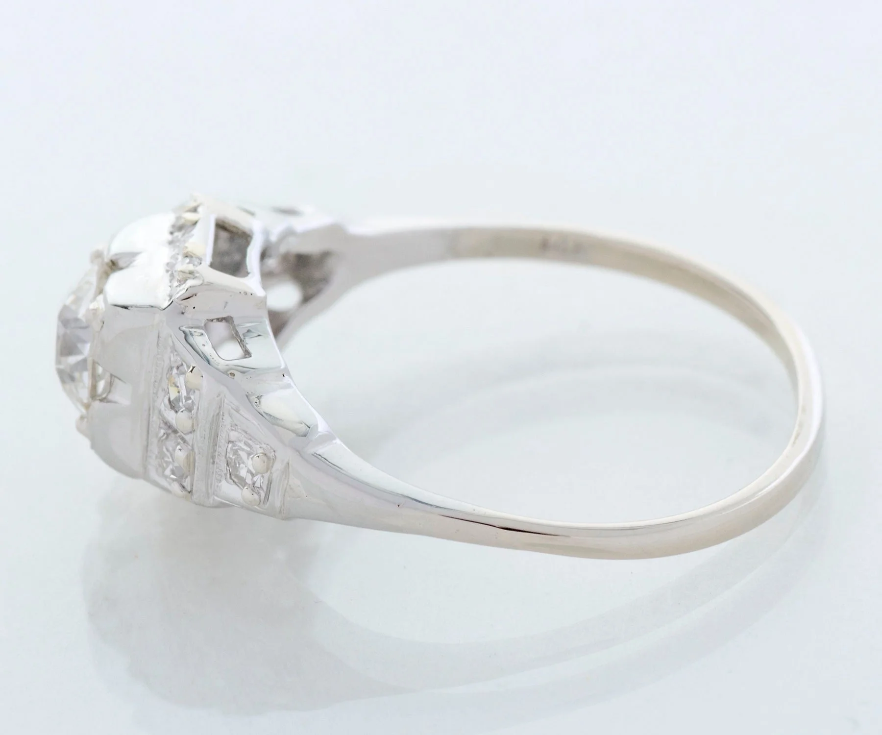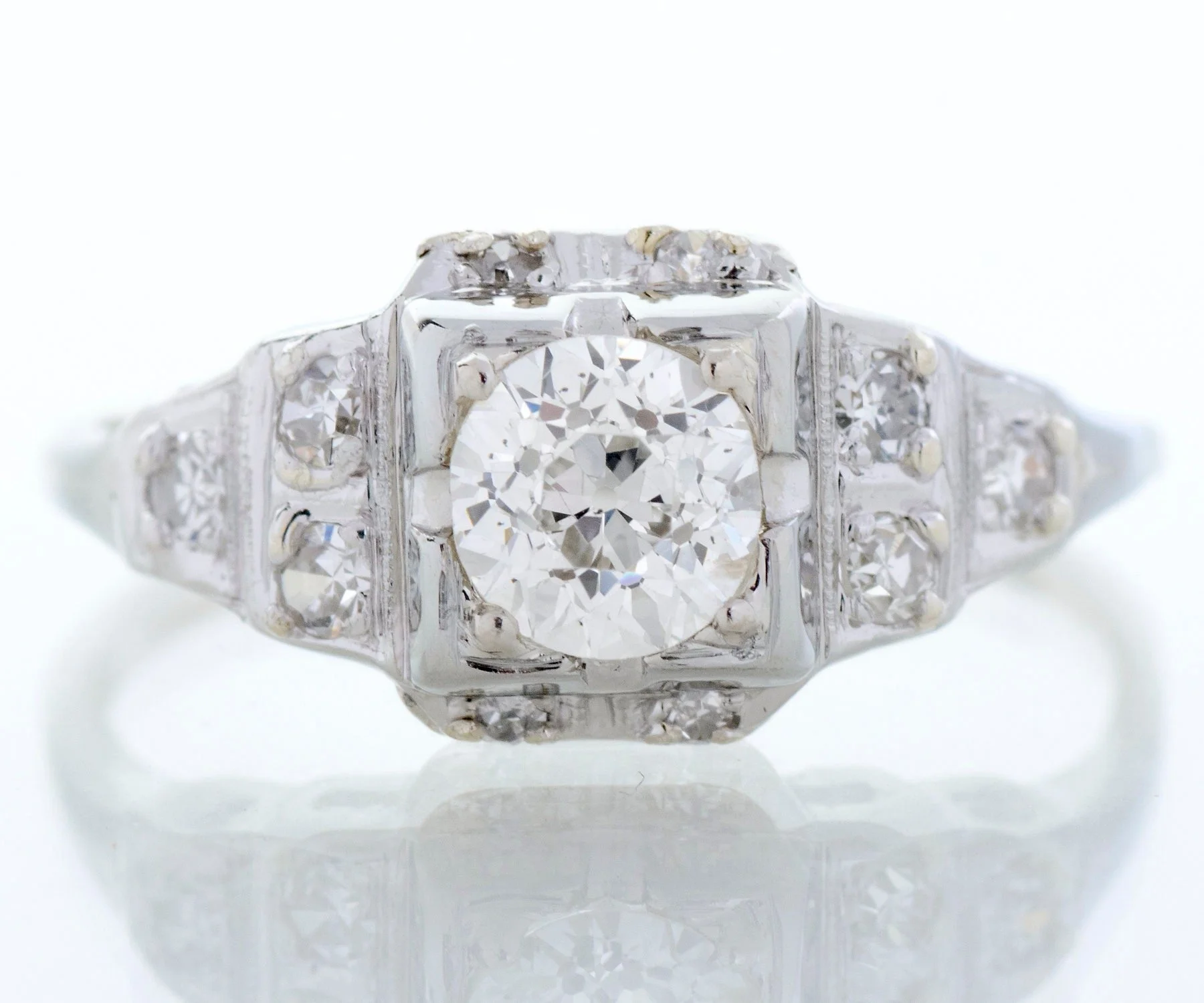 Antique Engagement Ring - Antique Art Deco 14k White Gold Diamond Engagement Ring Art Deco 14k White Gold European Cut Center Diamond =.51ct VS2/H 10 Single Cut Diamonds =.14ct VS/G-H Ring Size 6 (ring is sizable) Ring measures approximately 8mm at center, back of band is 1.2mm wide.