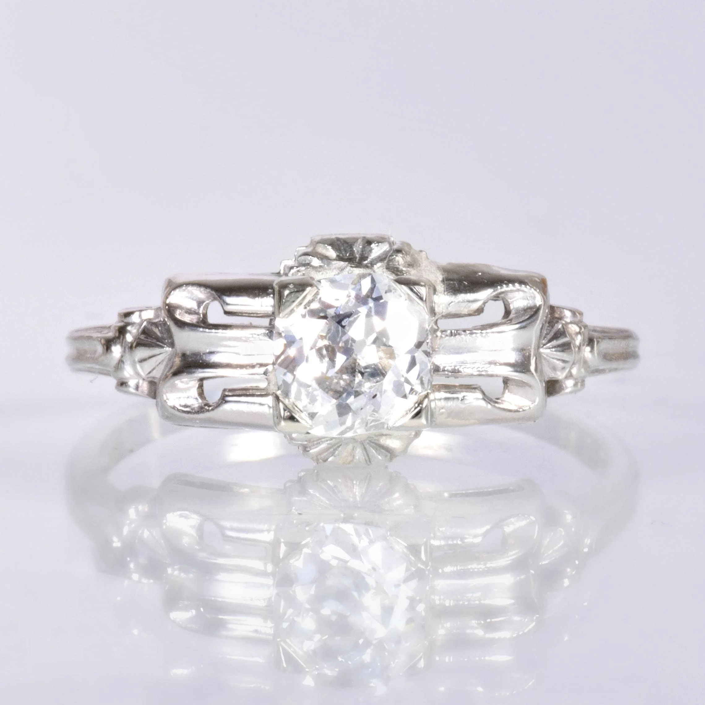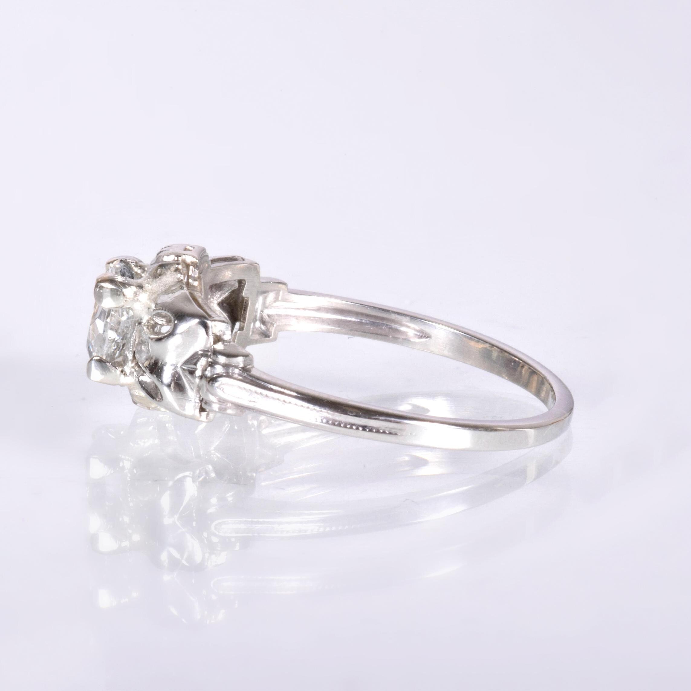 Antique Engagement Ring - Antique Art Deco 14k White Gold Diamond Engagement Ring 14k White Gold European Cut Diamond =.63ct VS2/G Ring Size 7 (sizable) Ring measures approximately 7.6mm wide at center, back of band is 1.4mm wide.