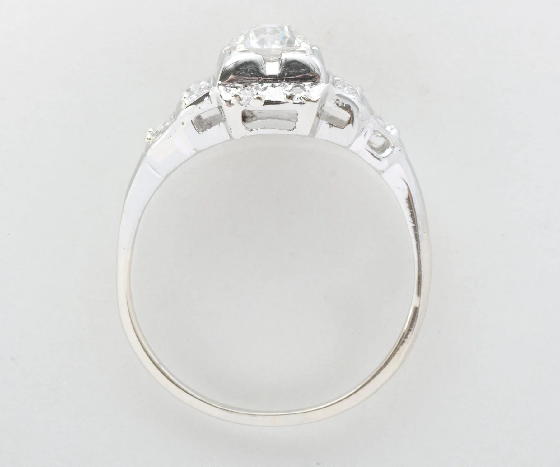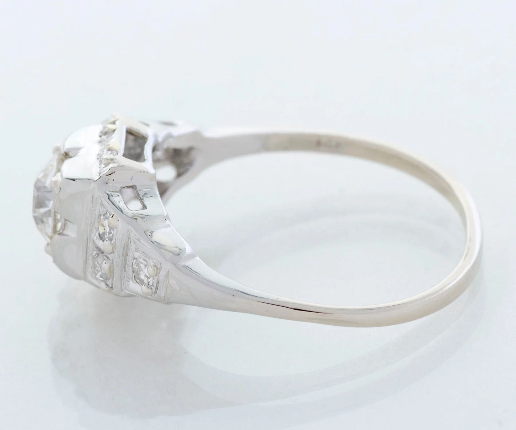 Antique Engagement Ring - Antique Art Deco 14k White Gold Diamond Engagement Ring Art Deco 14k White Gold European Cut Center Diamond =.51ct VS2/H 10 Single Cut Diamonds =.14ct VS/G-H Ring Size 6 (ring is sizable) Ring measures approximately 8mm at center, back of band is 1.2mm wide.