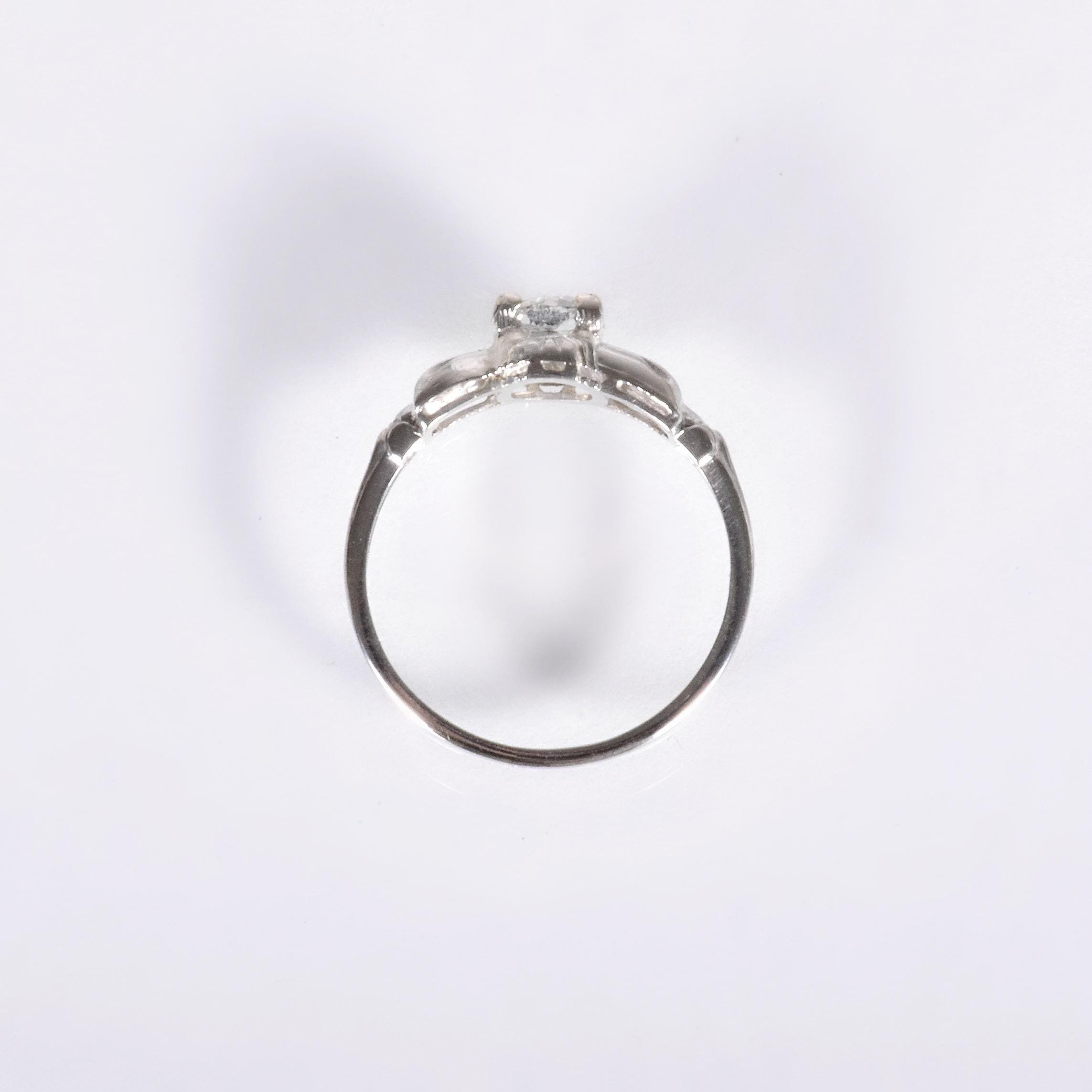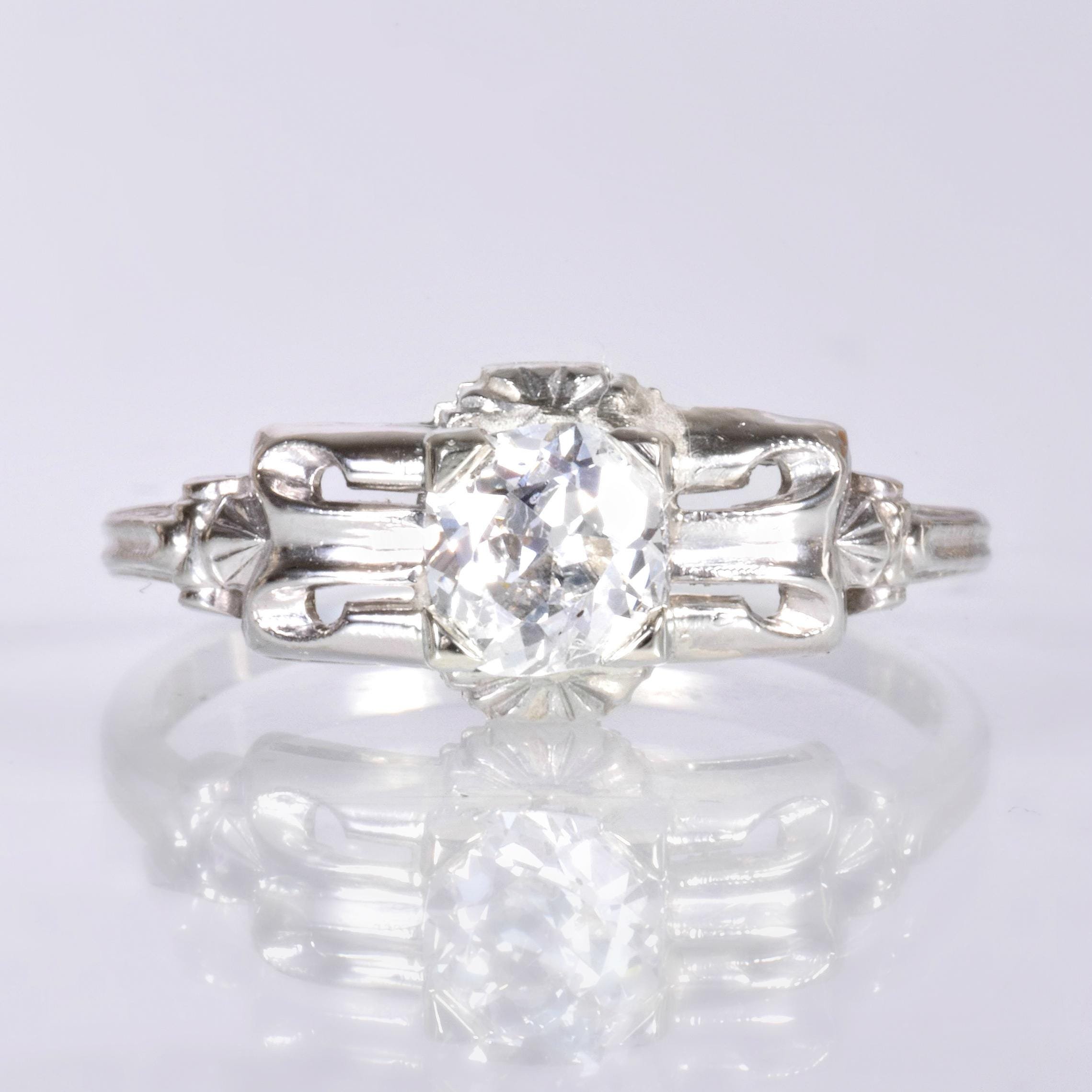 Antique Engagement Ring - Antique Art Deco 14k White Gold Diamond Engagement Ring 14k White Gold European Cut Diamond =.63ct VS2/G Ring Size 7 (sizable) Ring measures approximately 7.6mm wide at center, back of band is 1.4mm wide.