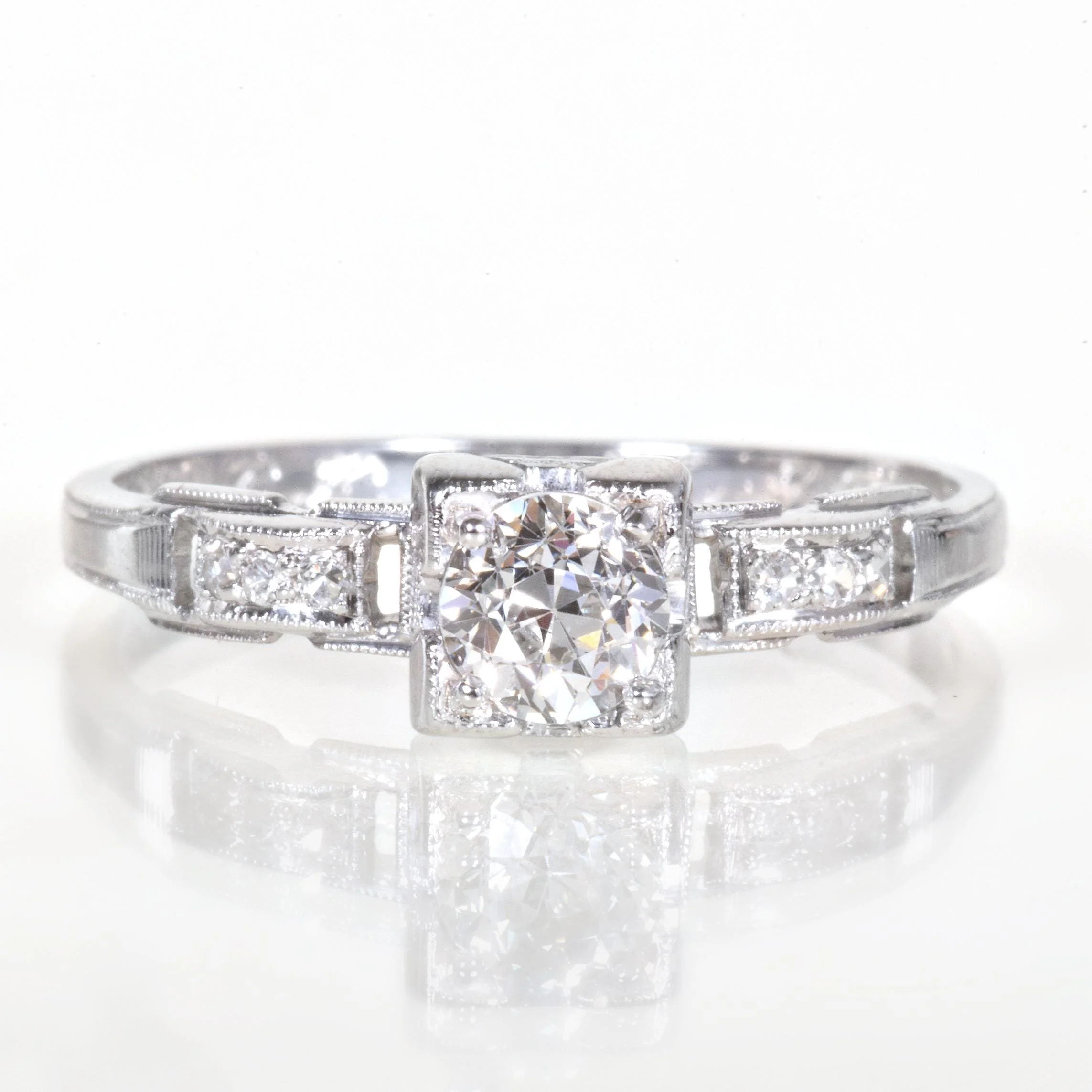 Antique Engagement Ring - Antique Art Deco 18k White Gold "1935" Diamond Ring