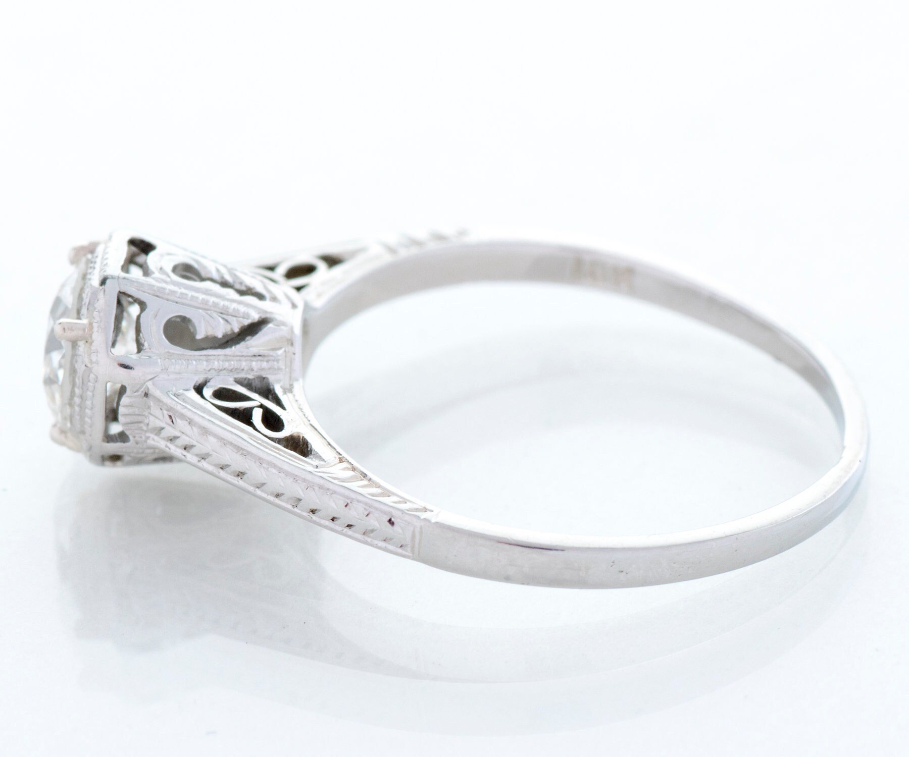 Antique Engagement Ring - Antique Art Deco 18k White Gold Diamond Engagement Ring 1920's 18k White Gold European Cut Diamond =.51ct SI2/H Ring Size 5 (sizable) Ring measures approximately 6.6mm at center, back of band is 1.3mm wide.
