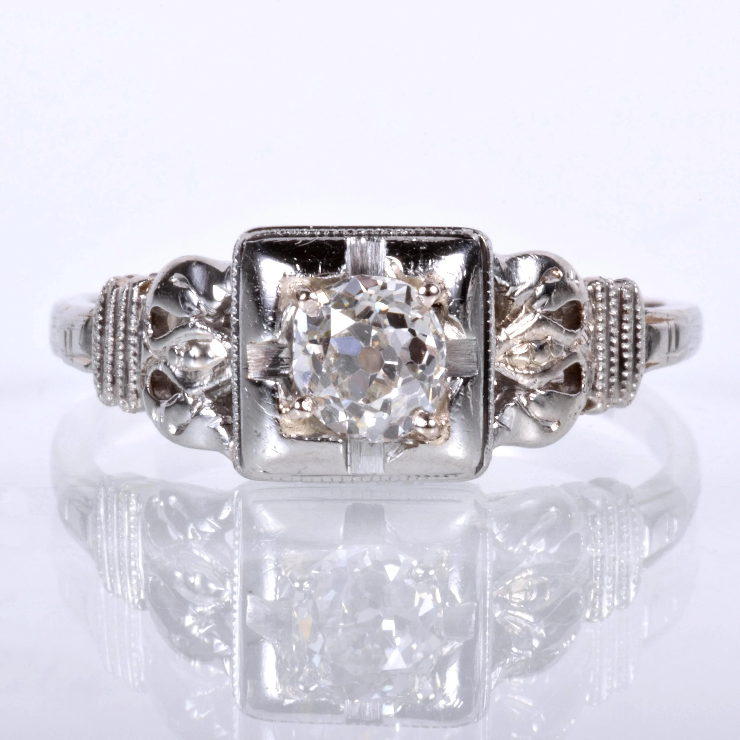 Antique Engagement Ring - Antique Art Deco 18k White Gold Diamond Engagement Ring
