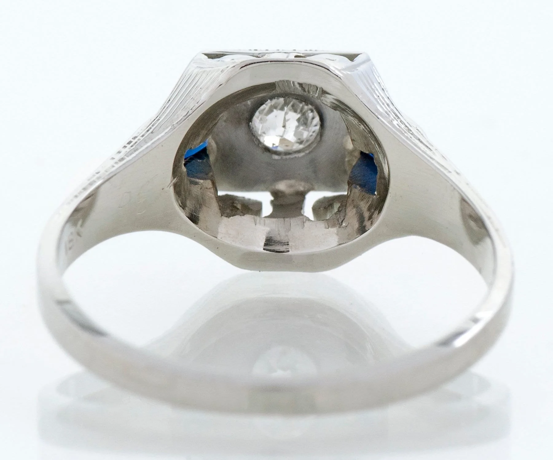 Antique Engagement Ring - Antique Art Deco 18k White Gold Diamond & Sapphire Engagement Ring