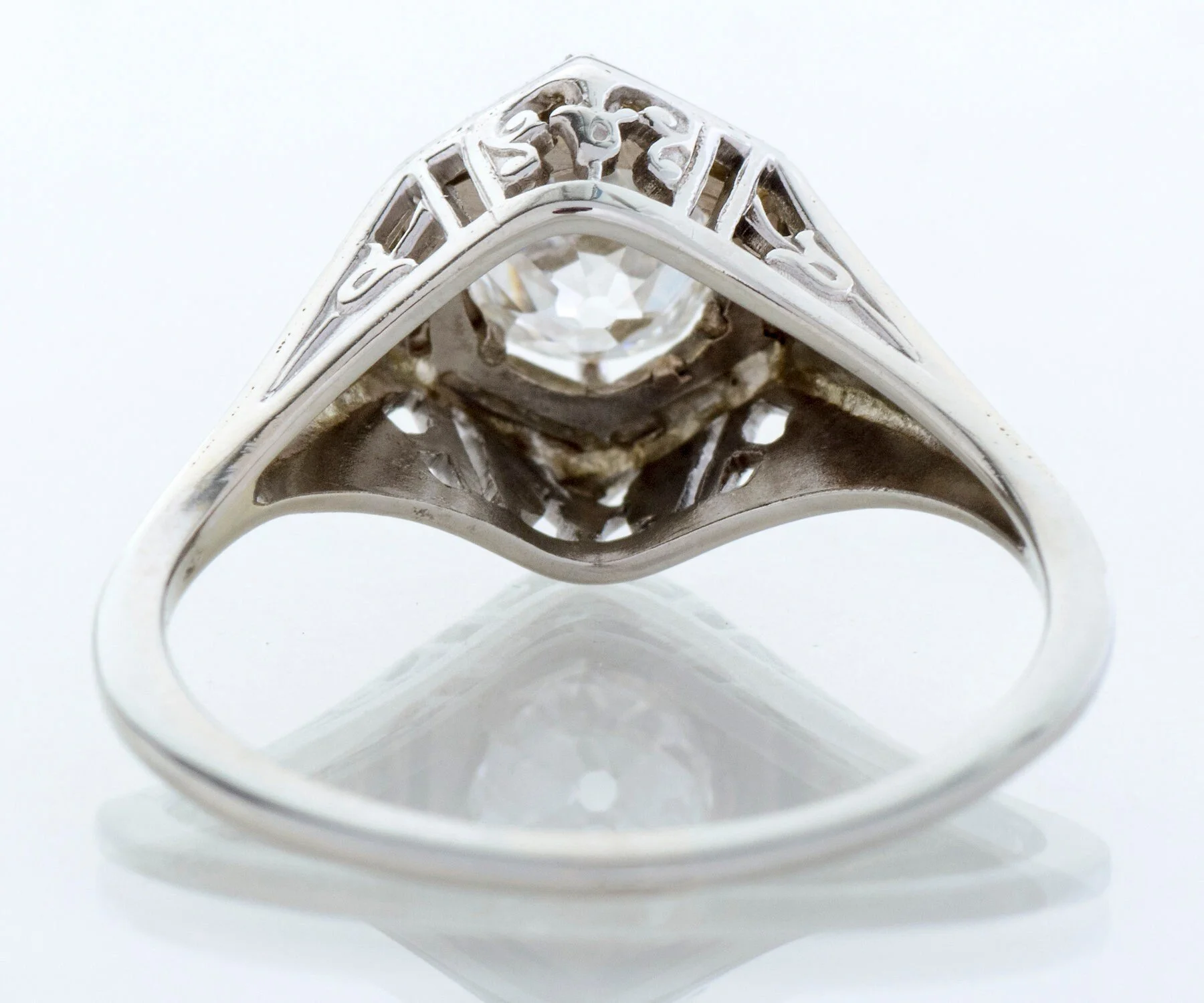 Antique Engagement Ring - Antique Art Deco 18k White Gold Mine Cut Diamond Engagement Ring