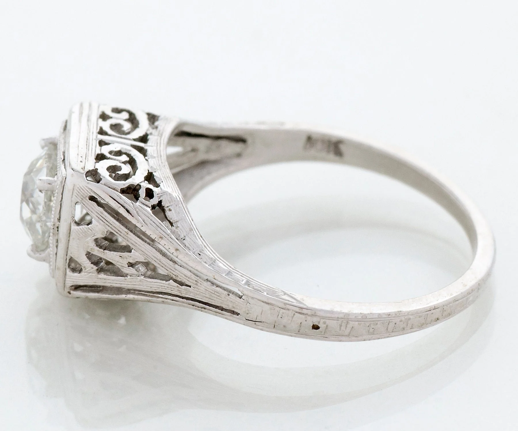 Antique Engagement Ring - Antique Art Deco 18k White Gold Mine Cut Diamond Engagement Ring Art Deco 18k White Gold Mine Cut Diamond =.71ct VS1/G Ring Size 6.5 (ring is sizable) Ring measures approximately 8.1mm at center, back of band is 1.5mm wide.