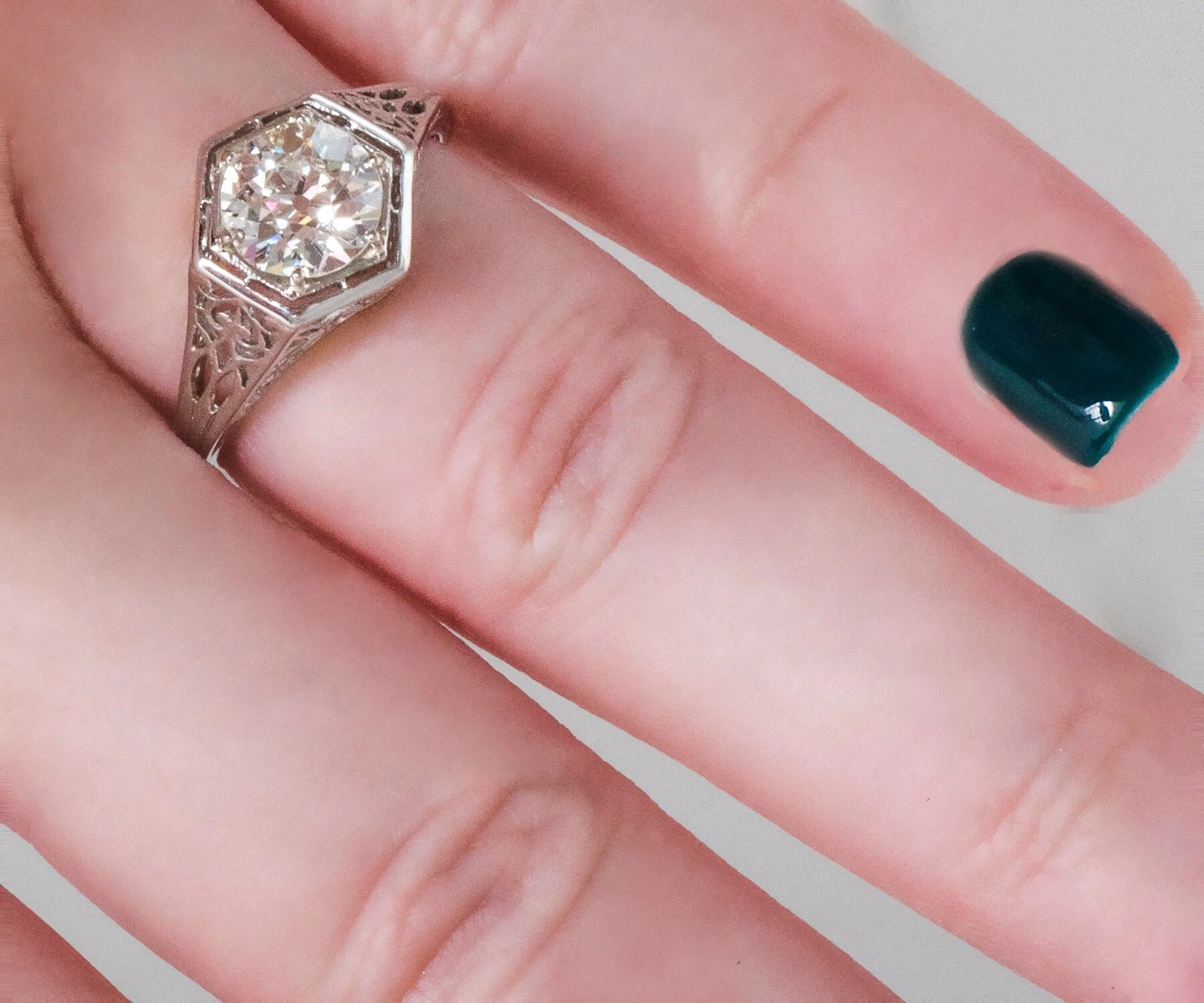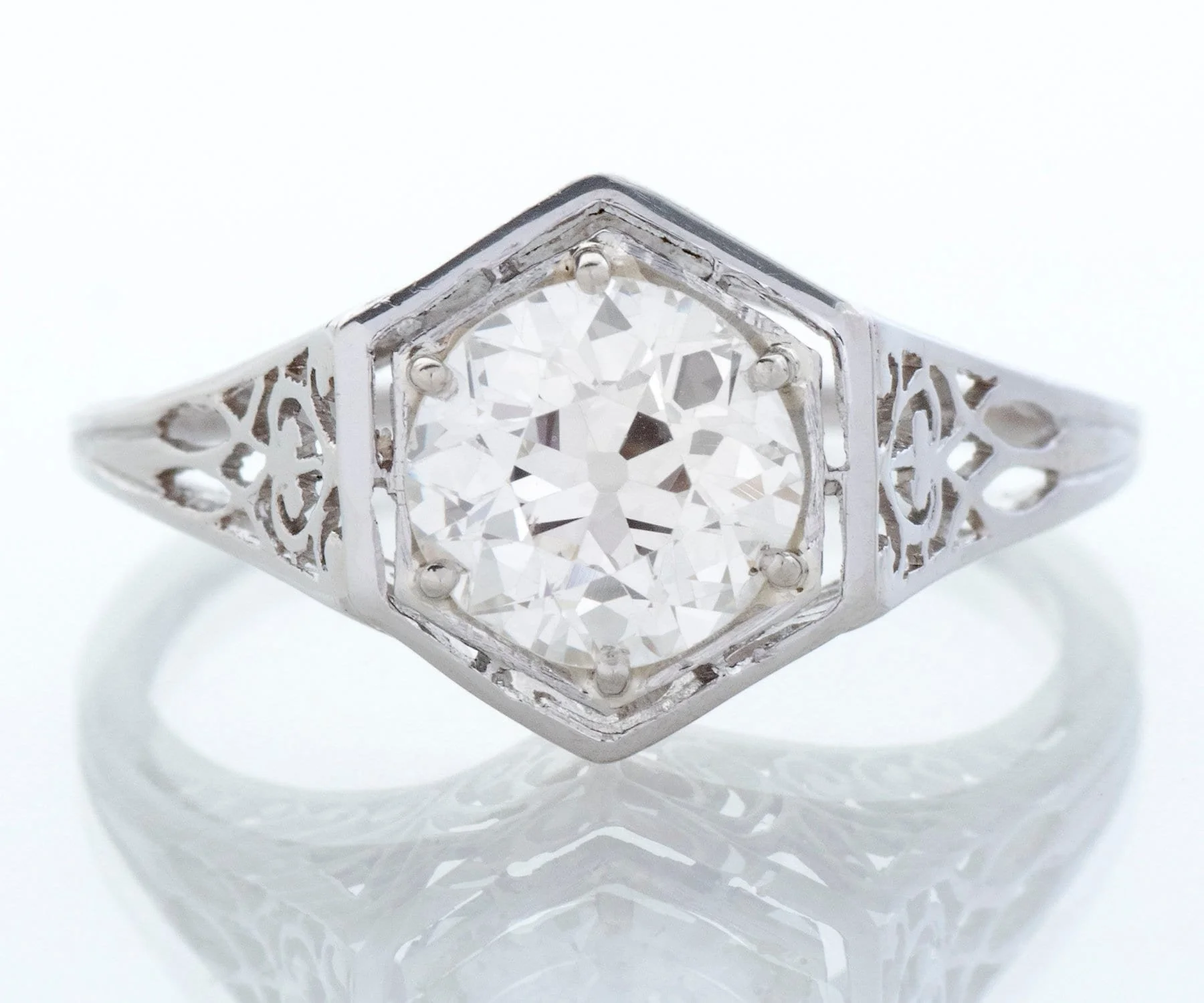Antique Engagement Ring - Antique Art Deco Platinum 1.21ct European Cut Diamond Engagement Ring