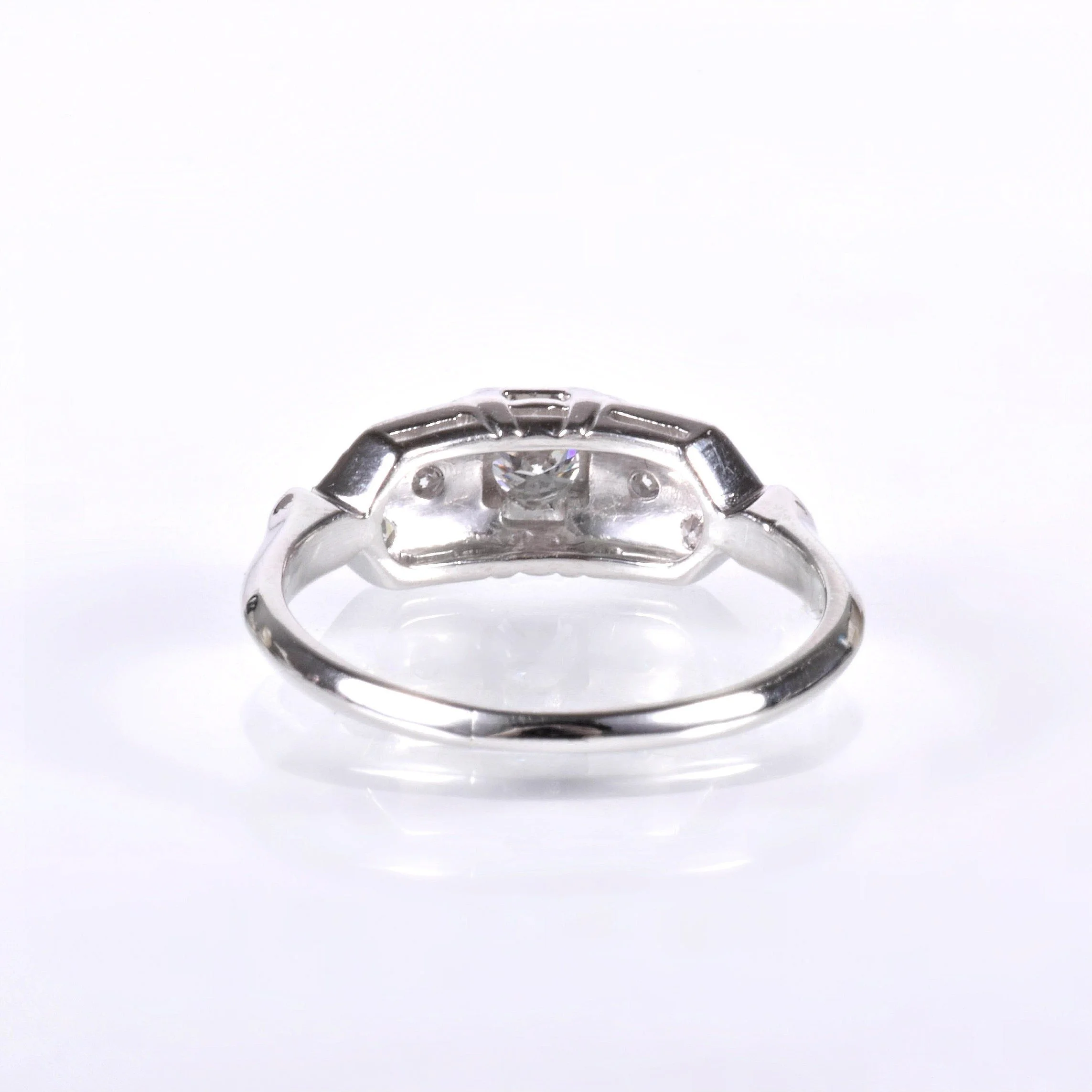 Antique Engagement Ring - Antique Art Deco Platinum Diamond Engagement Ring Platinum Circa 1930's Transitional Cut Center Diamond =.20ct 6 Single Cut Side Diamonds =.30ct All Diamonds VS1-VS2/G-H Ring Size 6 3/8 (sizable) Ring measures approximately 5.9mm at center and tapers to 1.5mm wide in the back of the shank.