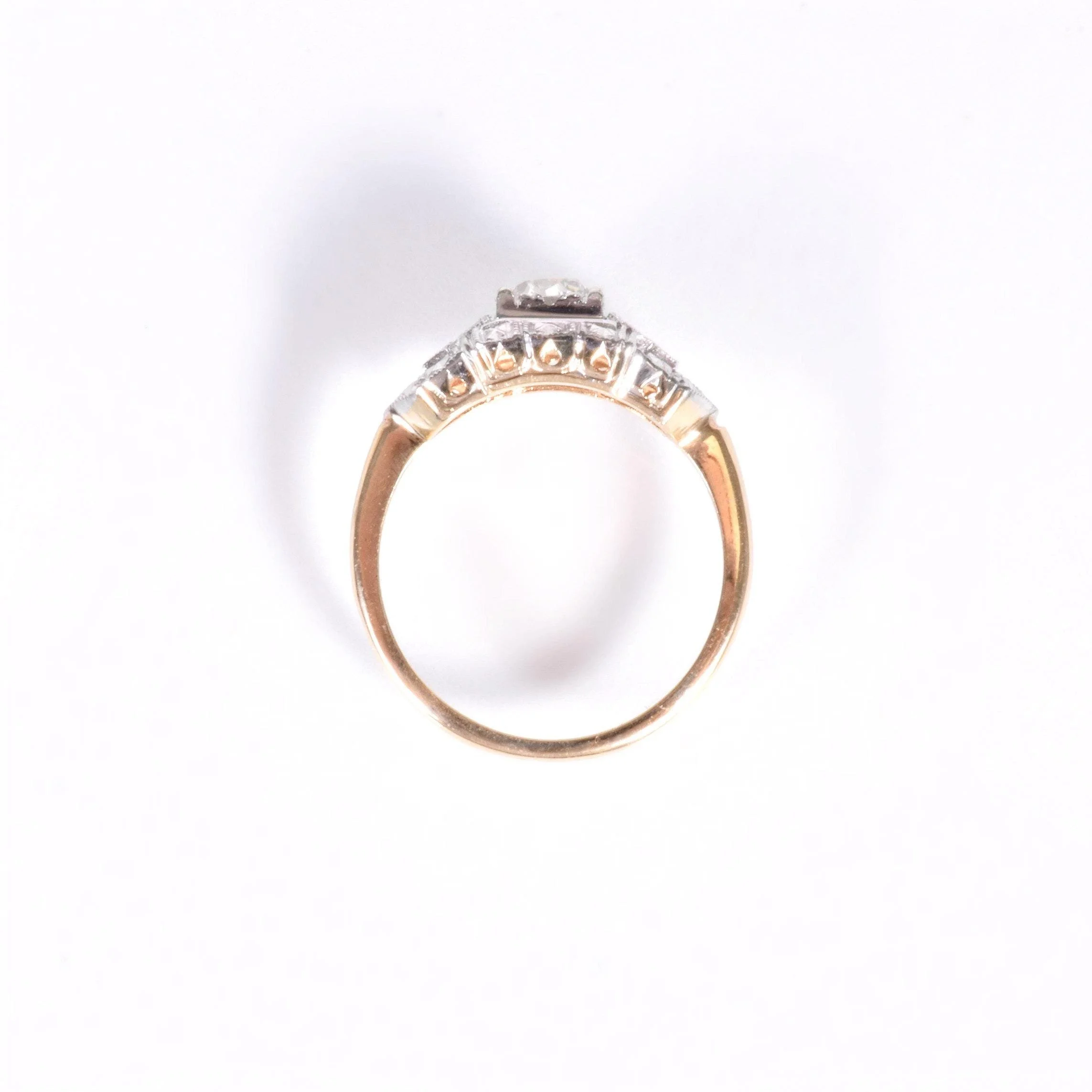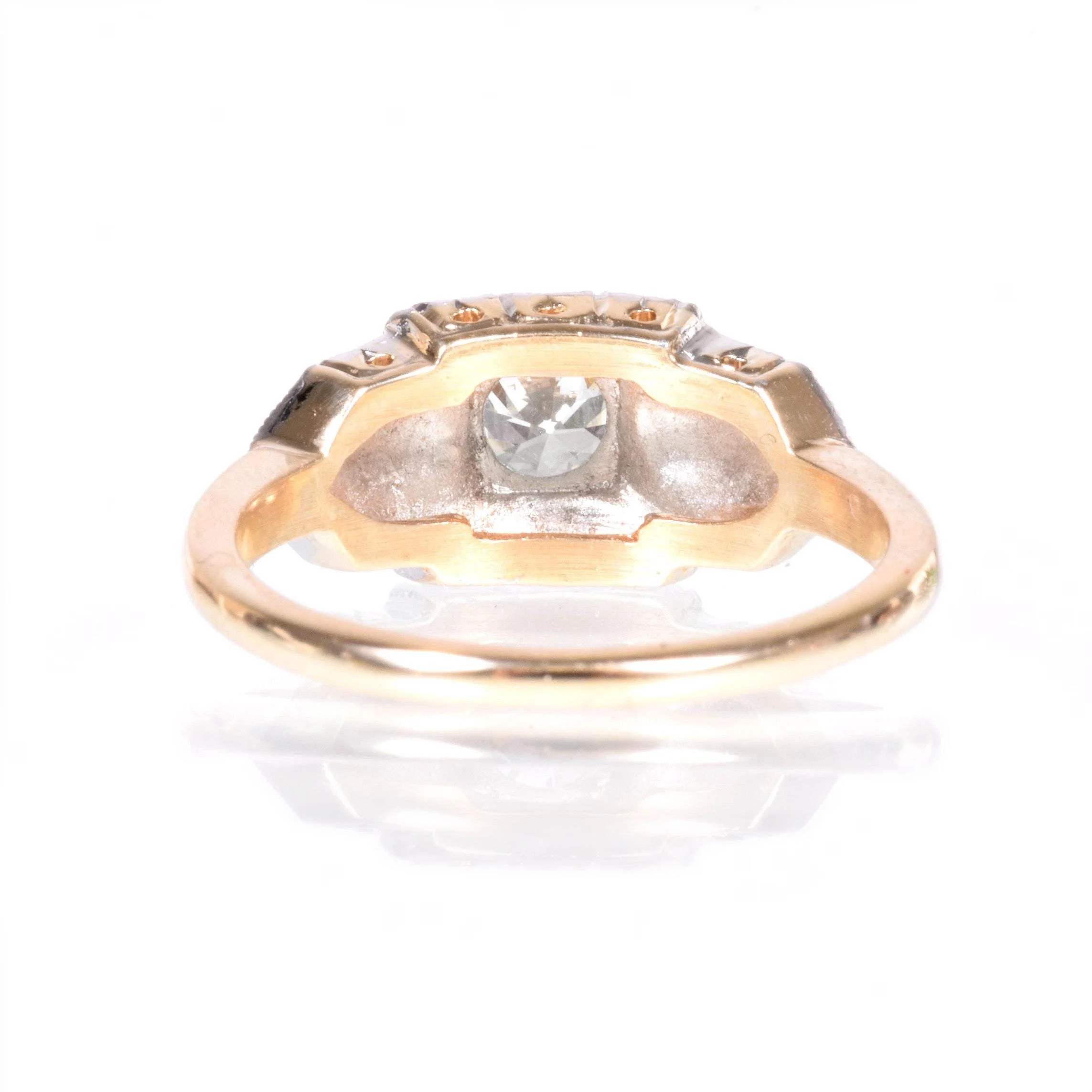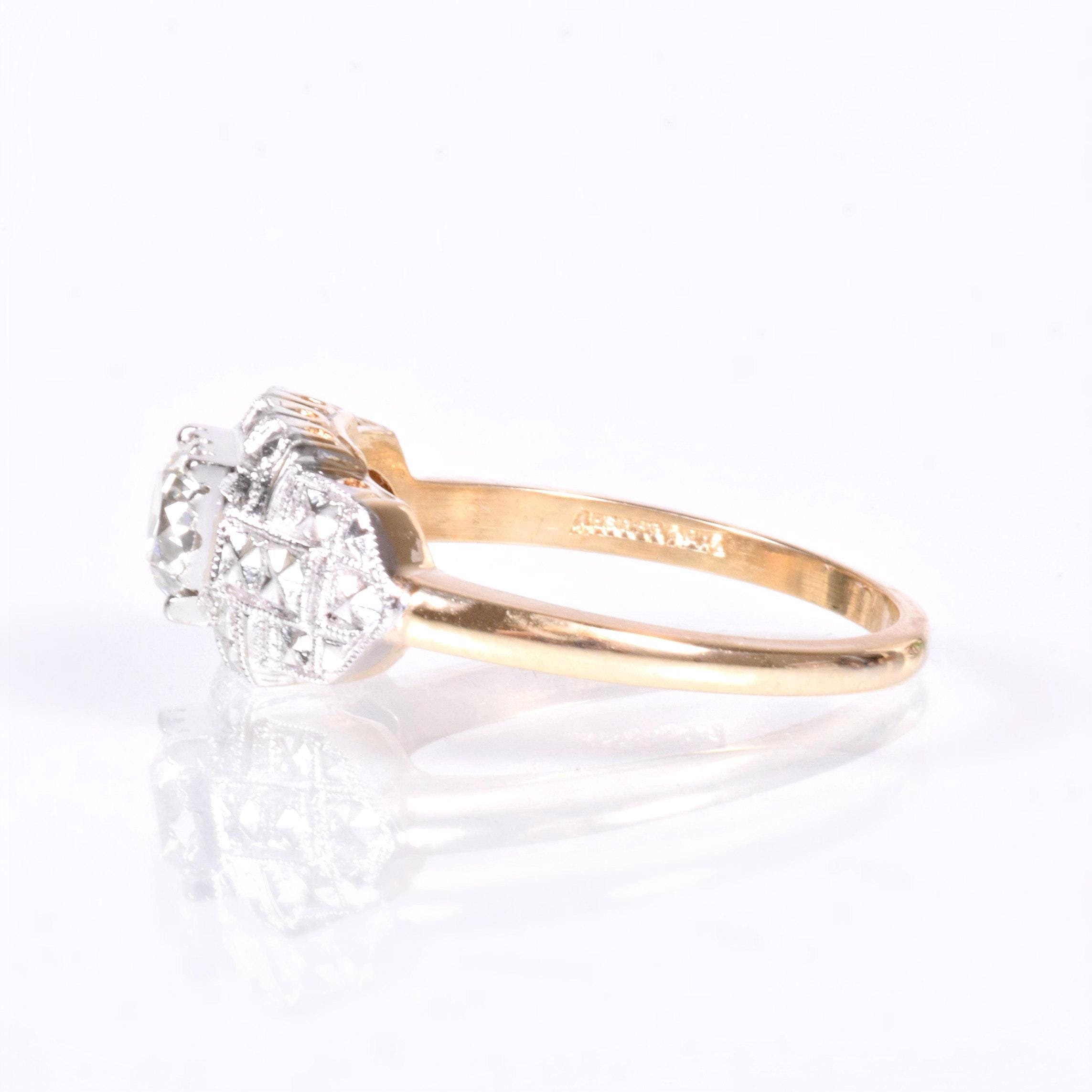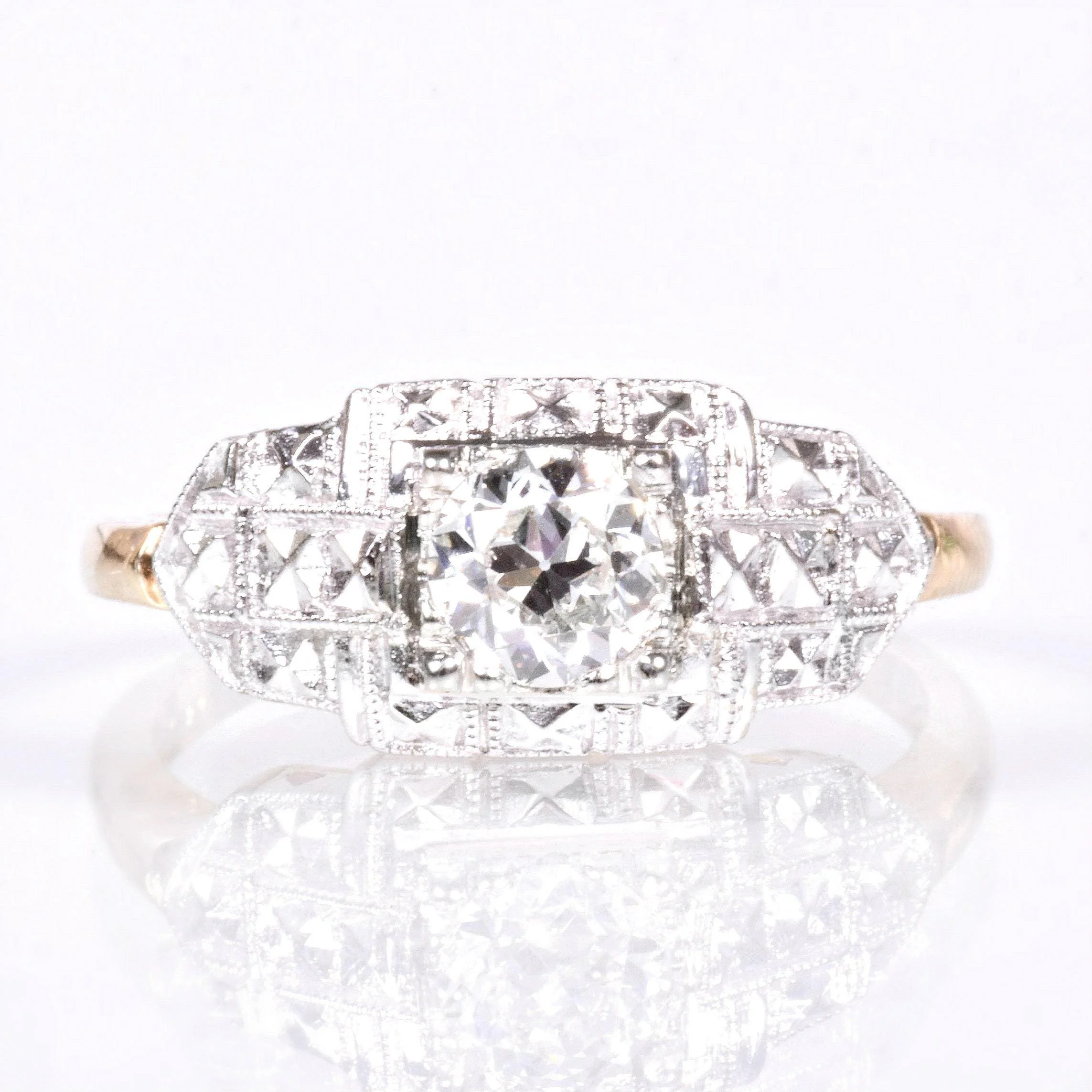 Antique Engagement Ring - Antique Art Deco Two-Tone Diamond Engagement Ring Circa 1930's 14k White & Yellow Gold European Cut Diamond =.47ct VS2/F New Old Stock Ring Size 6.5 (sizable) Ring measures approximately 7.9mm wide at center, back of band is 1.5mm wide.