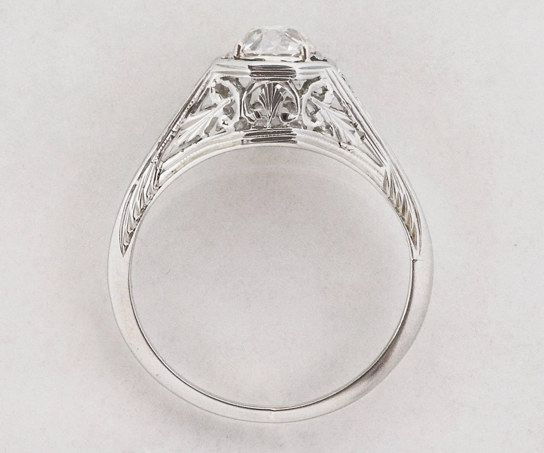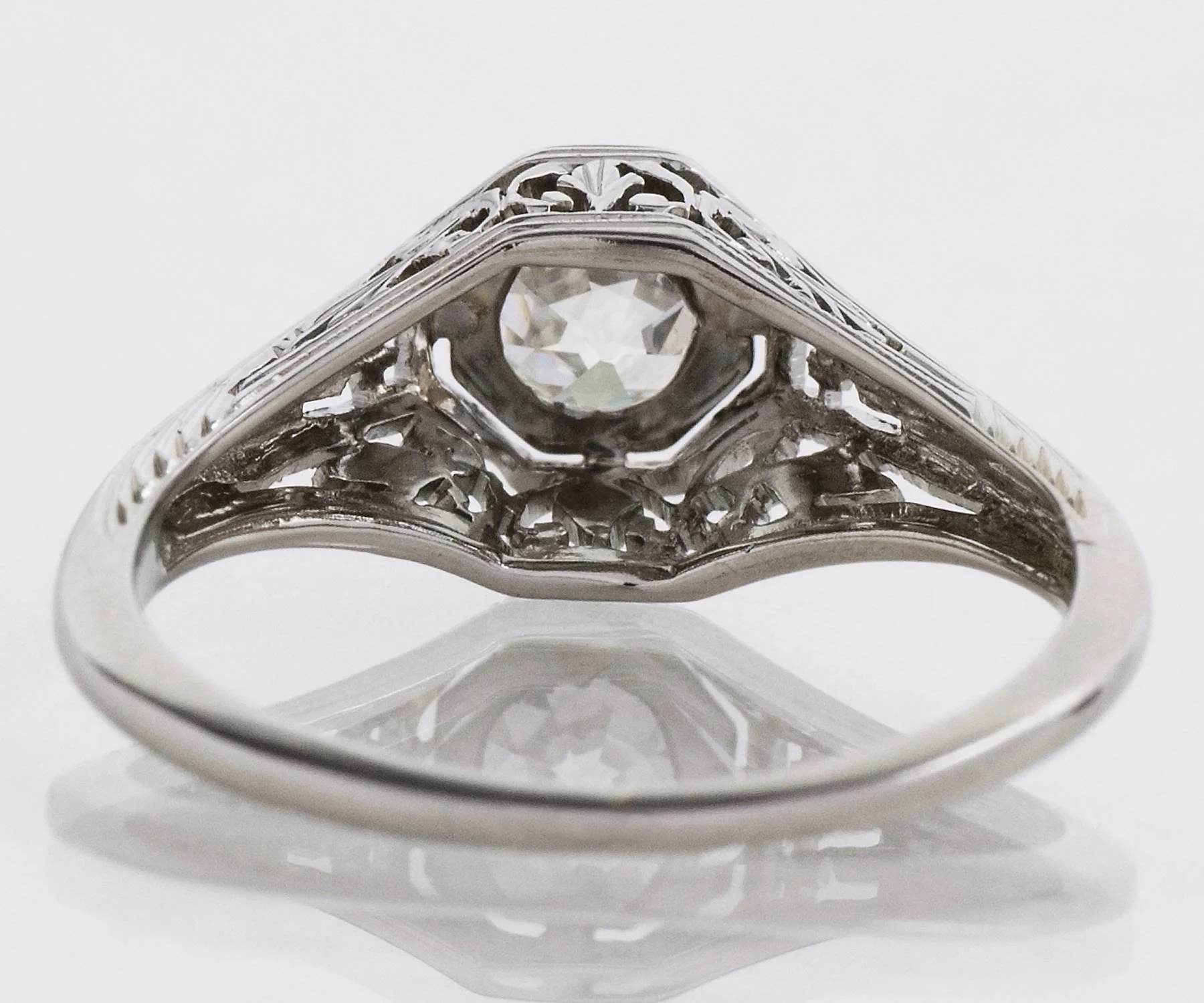 Antique Engagement Ring - Antique Arts & Crafts Era 18k White Gold Diamond Engagement Ring Arts & Crafts Era 18k White Gold European Cut Diamond =.57ct VS1/H Ring Size 5.25 (ring is sizable) Ring measures approximately 7.3mm at center, back of band is 1.4mm wide.