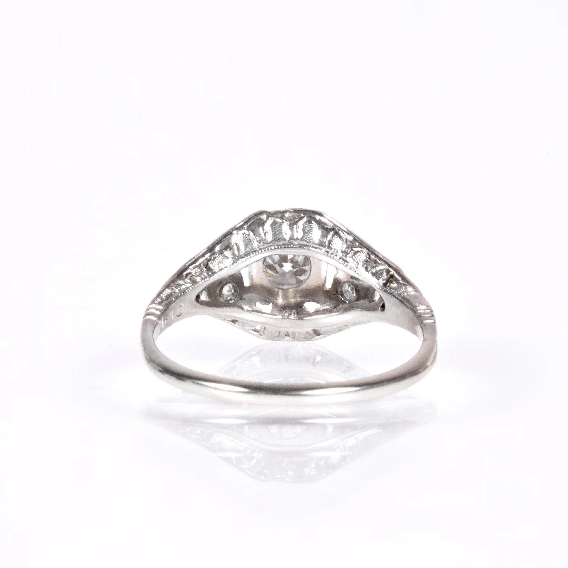 Antique Engagement Ring - Antique Circa 1920's 18k White Gold Diamond Engagement Ring 18k White Gold European Cut Center Diamond =.38ct VS1/H 10 Single Cut Side Diamonds =.15ct VS-SI/G-J Ring Size 6.75 (sizable) Ring measures approximately 9.2mm wide at center, back of band is 1.3mm wide.