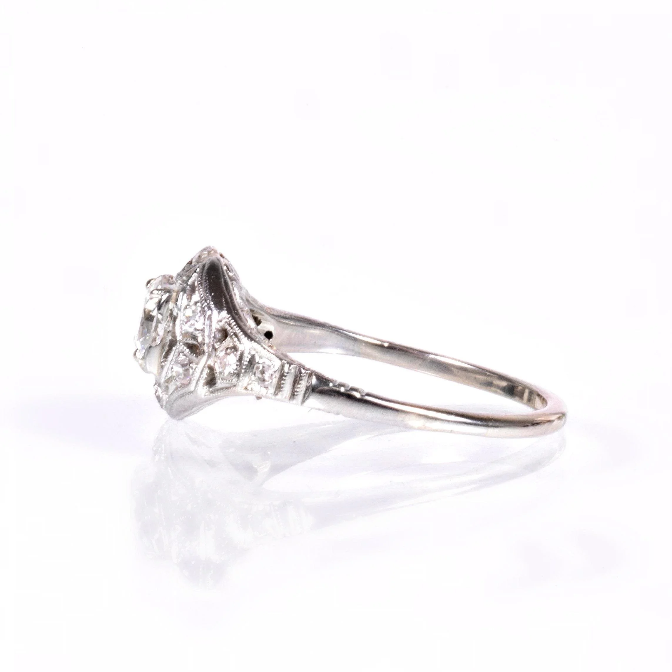 Antique Engagement Ring - Antique Circa 1920's 18k White Gold Diamond Engagement Ring