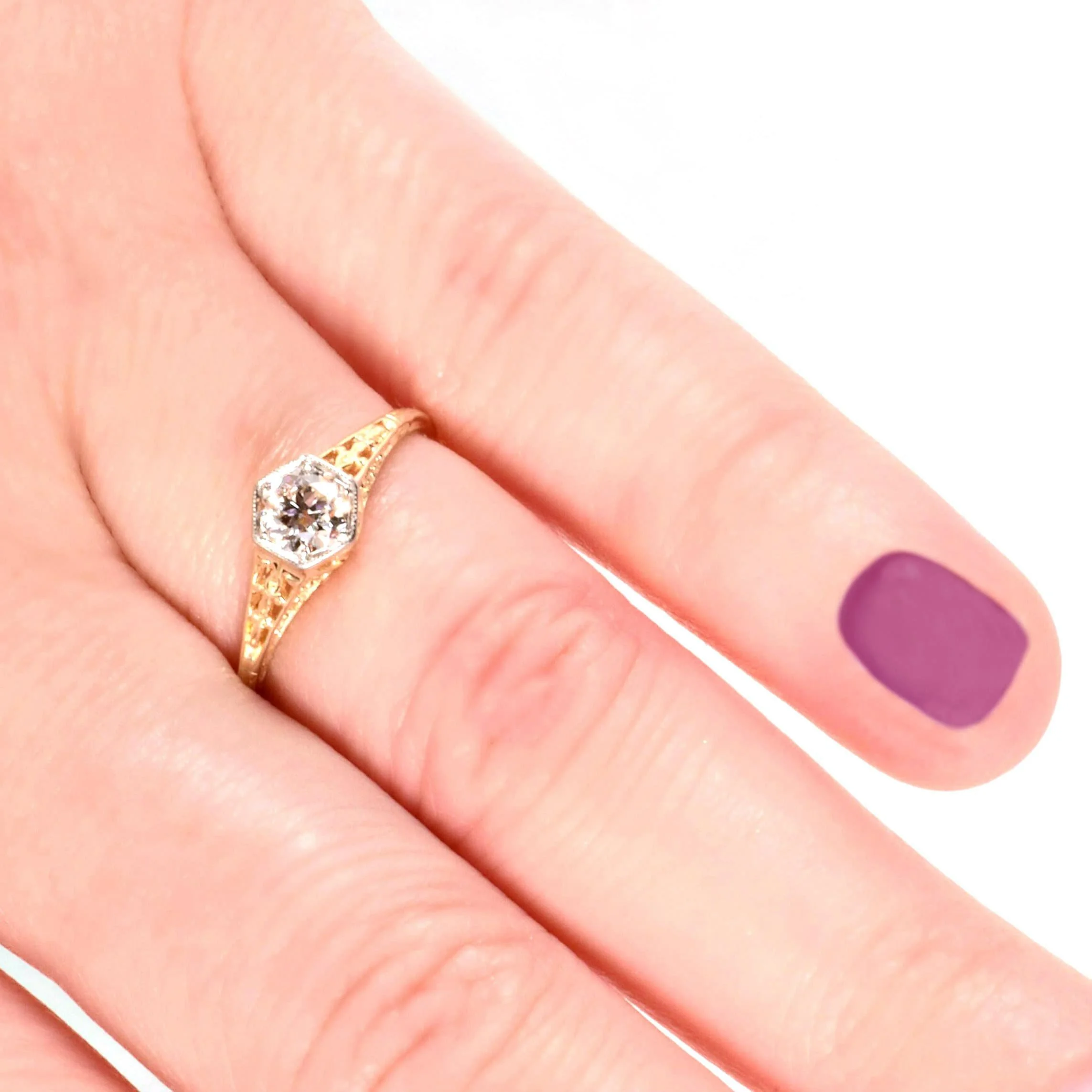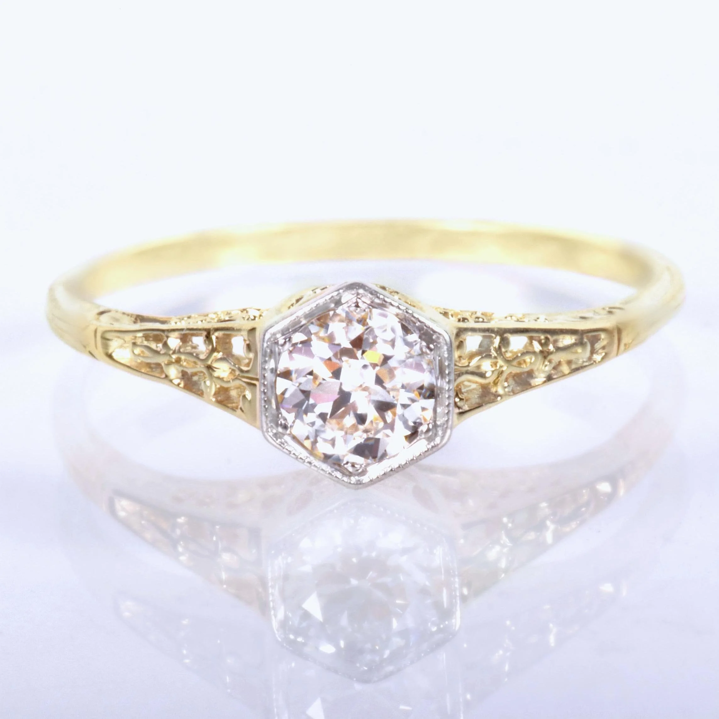 Antique Engagement Ring - Antique Edwardian 14k Two-Tone Diamond Engagement Ring 1910's 14k Yellow & White Gold European Cut Diamond =.45ct VS1/G Ring Size 6.5 (sizable) Ring measures approximately 6mm at center, back of band is 1.2mm wide.