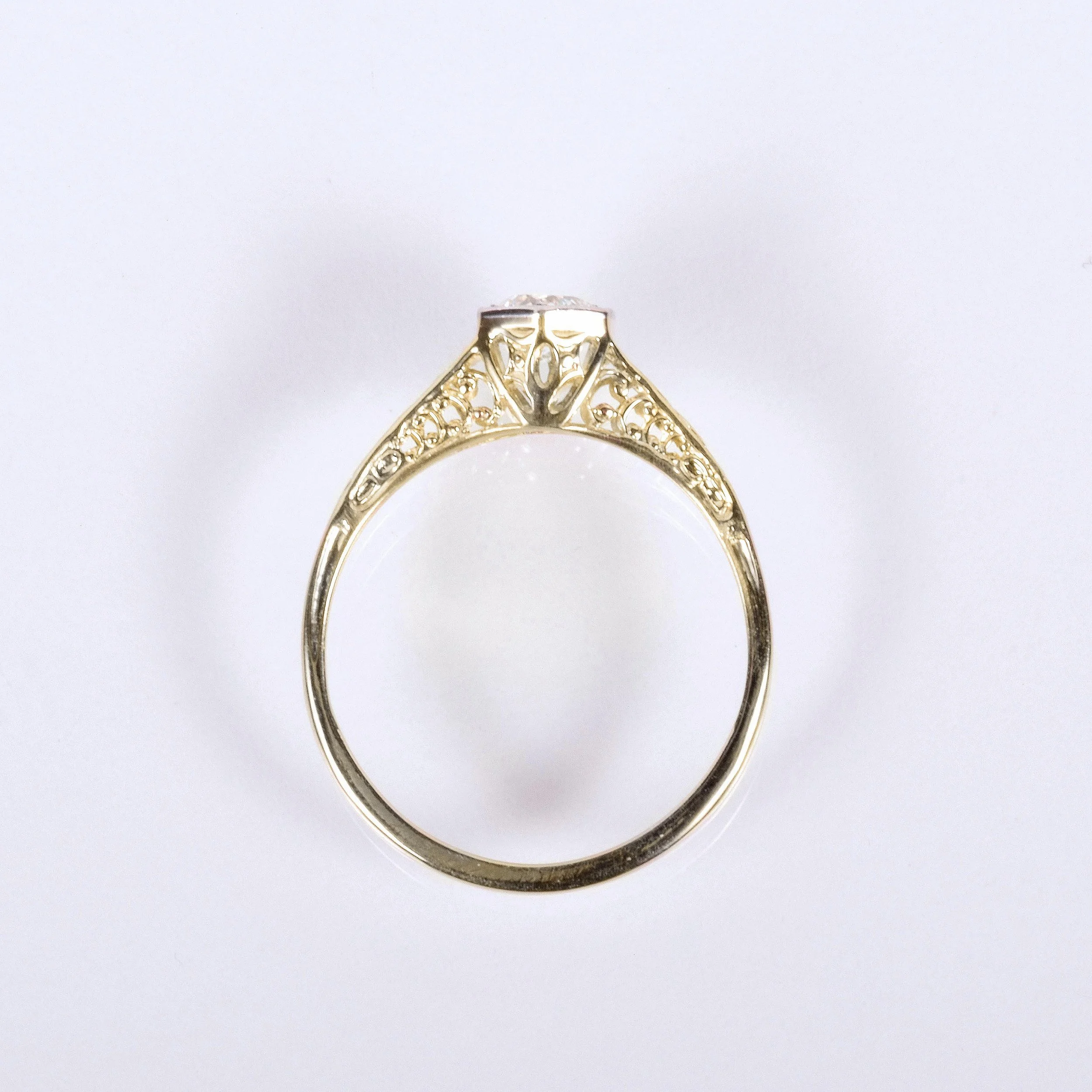 Antique Engagement Ring - Antique Edwardian 14k Two-Tone Diamond Engagement Ring 1910's 14k Yellow & White Gold European Cut Diamond =.45ct VS1/G Ring Size 6.5 (sizable) Ring measures approximately 6mm at center, back of band is 1.2mm wide.