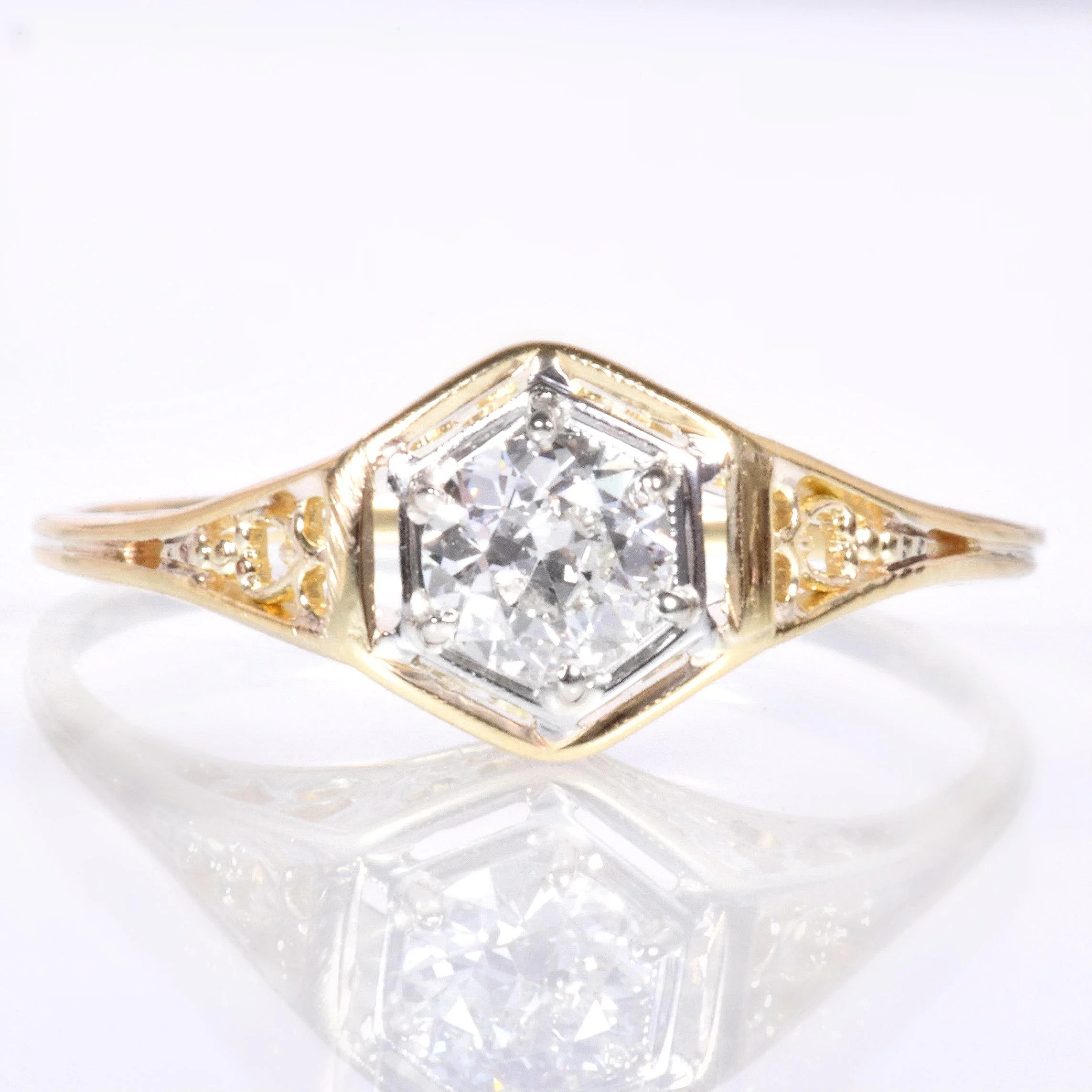 Antique Engagement Ring - Antique Edwardian 14k Two-Tone Gold Diamond Engagement Ring