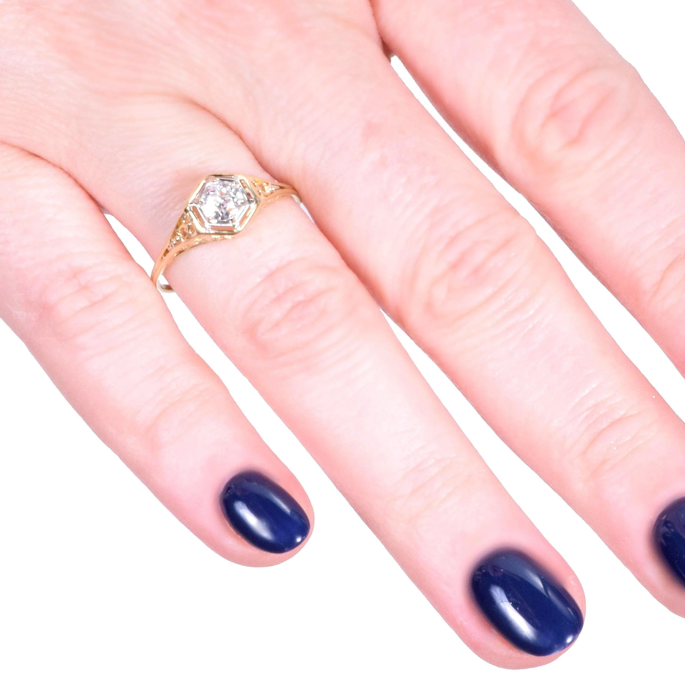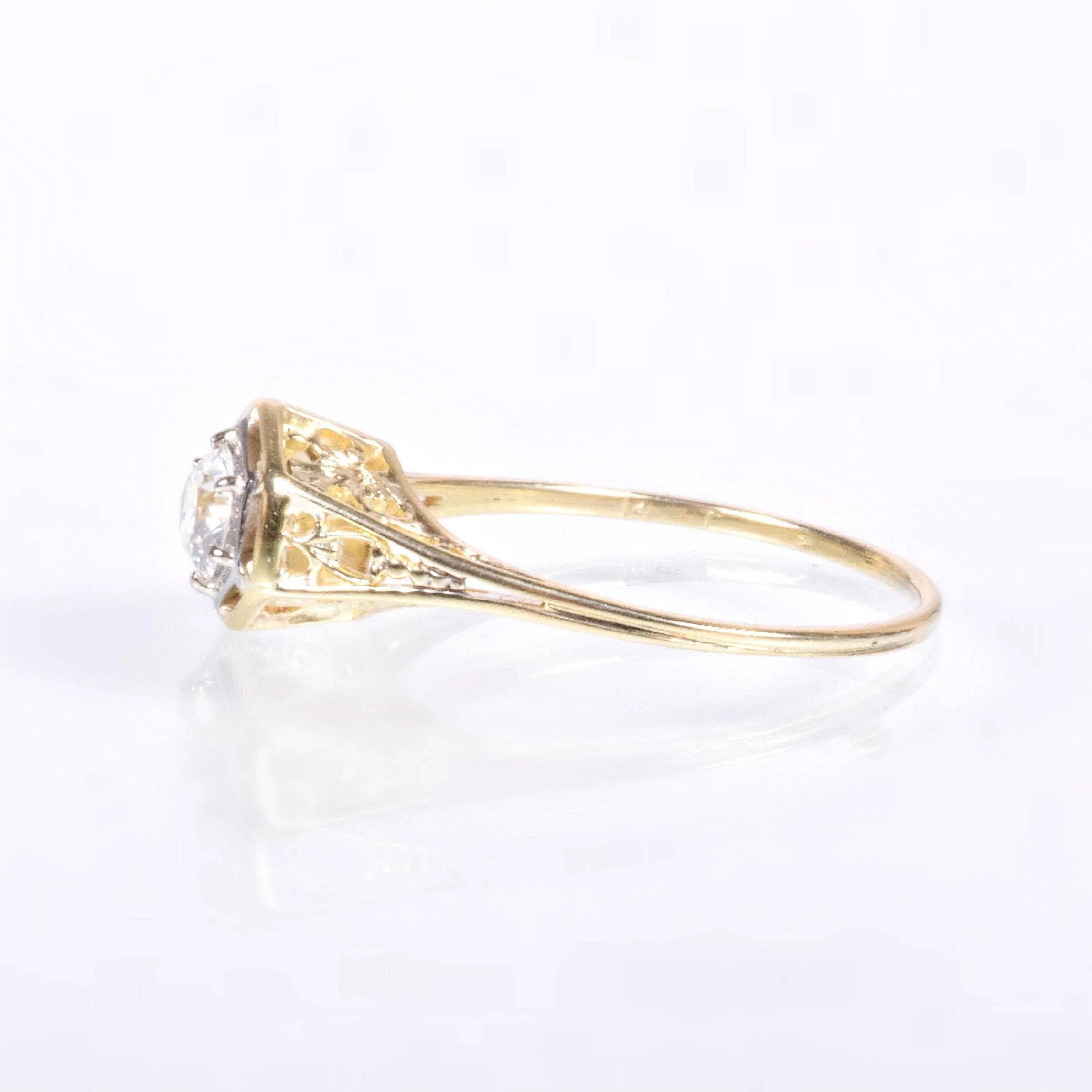 Antique Engagement Ring - Antique Edwardian 14k Two-Tone Gold Diamond Engagement Ring