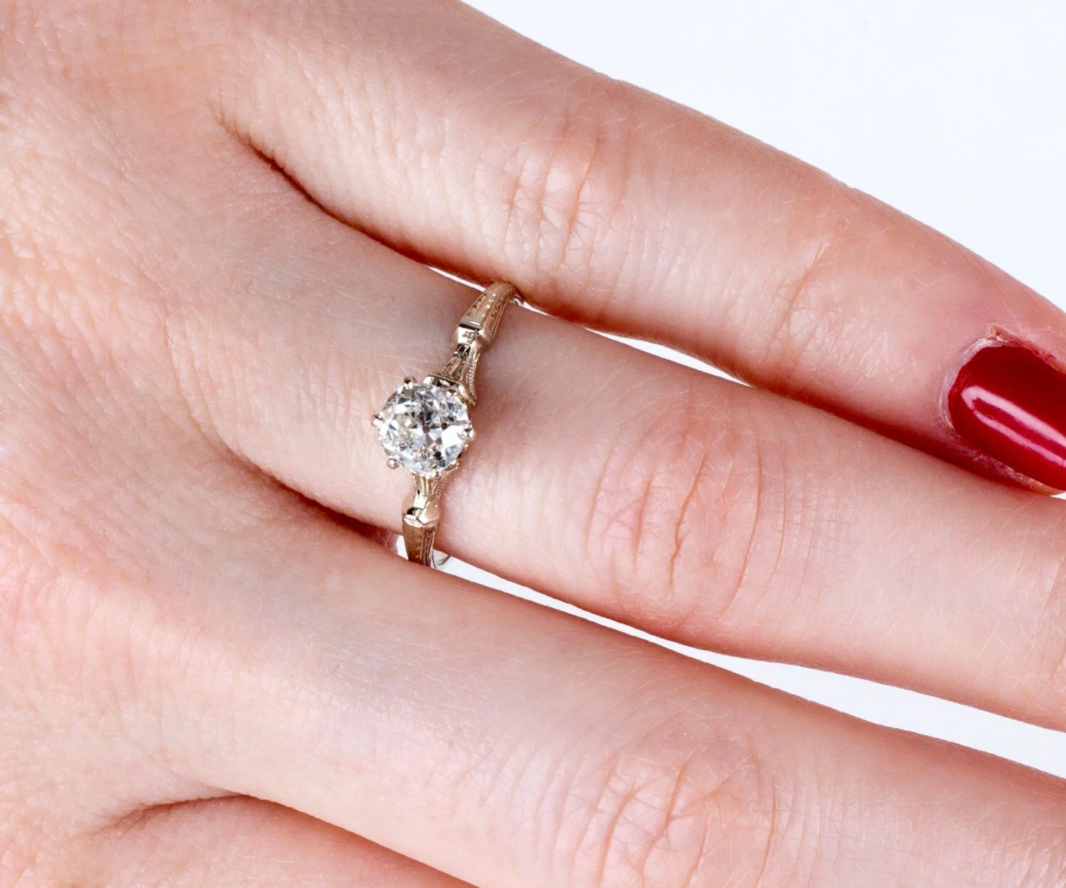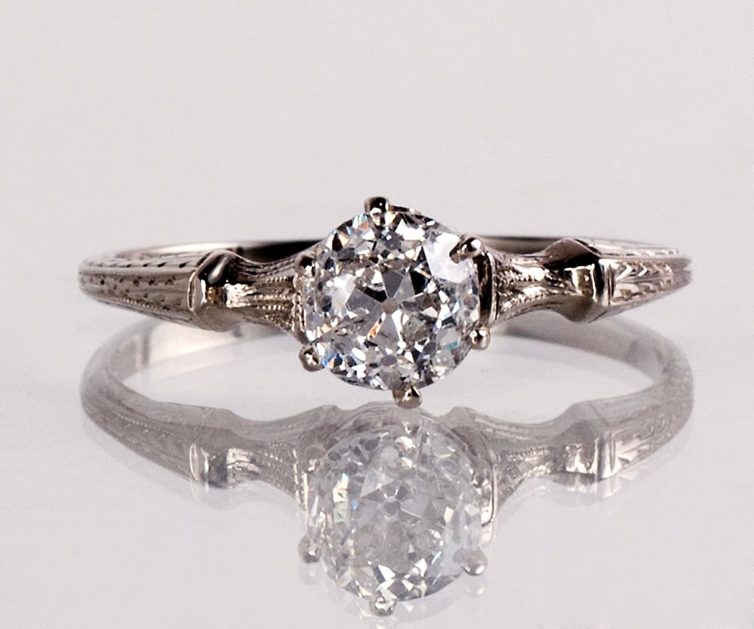 This stunning Edwardian diamond engagement ring is fit for a princess. The basket detail is beautiful and romantic.