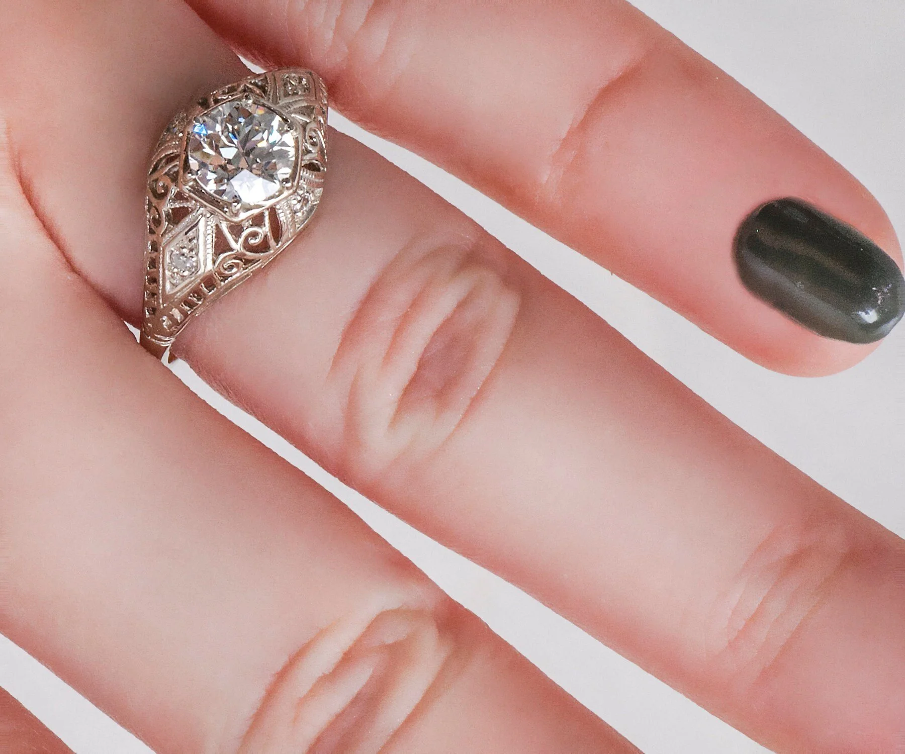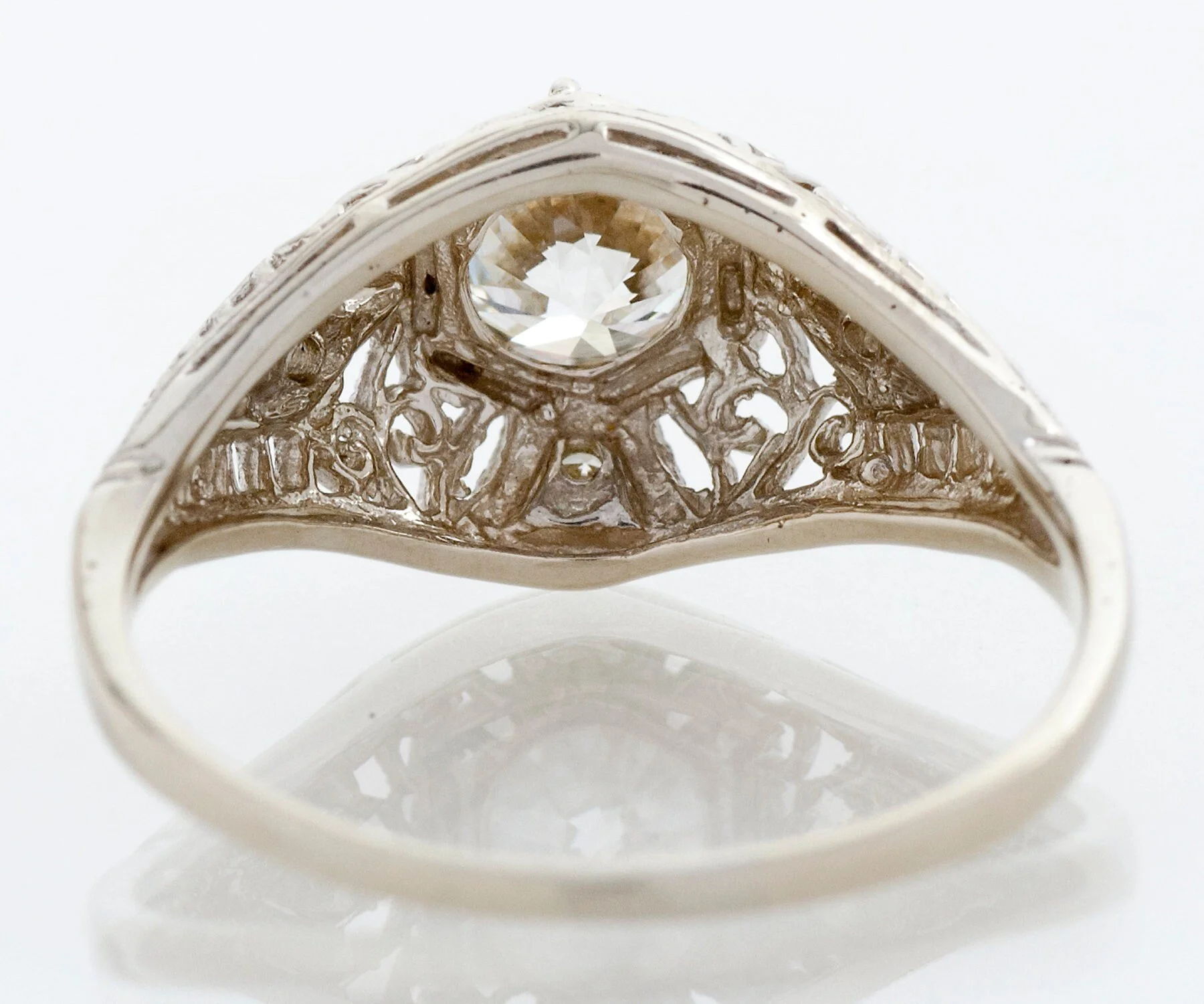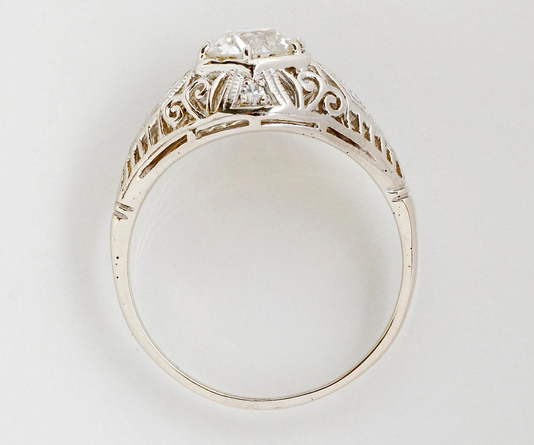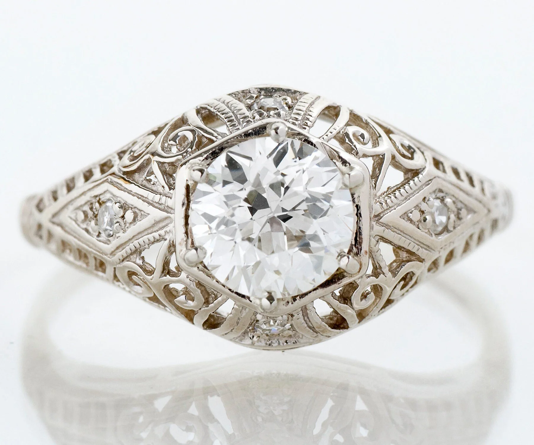 Antique Engagement Ring - Antique Edwardian 14k White Gold Filigree Diamond Engagement Ring 1910's 14k White Gold European Cut Diamond = .93ct VVS2/H Ring Size 7 (ring is sizable) Ring measures approximately 10.1mm at center, back of band is 1.2mm wide.