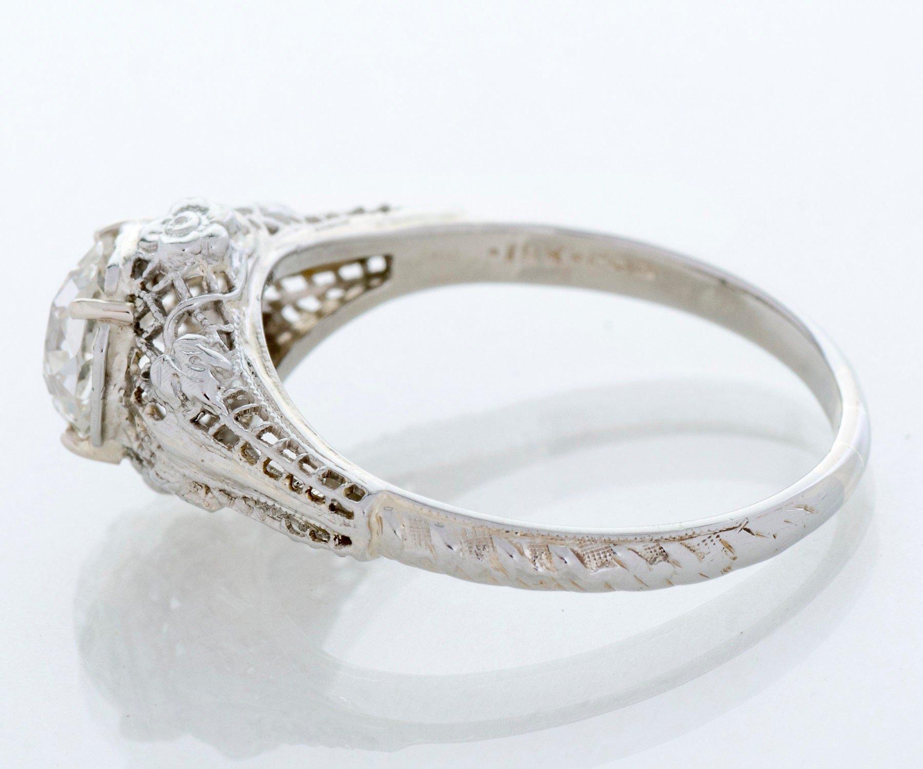 Antique Engagement Ring - Antique Edwardian 18k White Gold 1.03ct Diamond Engagement Ring 1910's 18k White Gold European Cut Diamond =1.03ct SI1/H (EGL) Ring Size 7 3/8 (sizable) Ring measures approximately 9.1mm at center, back of band is 1.9mm wide.
