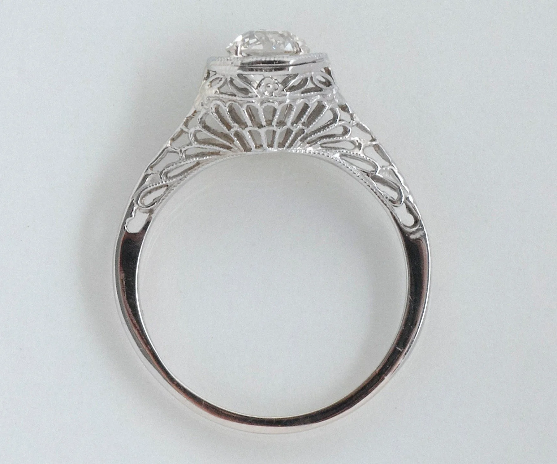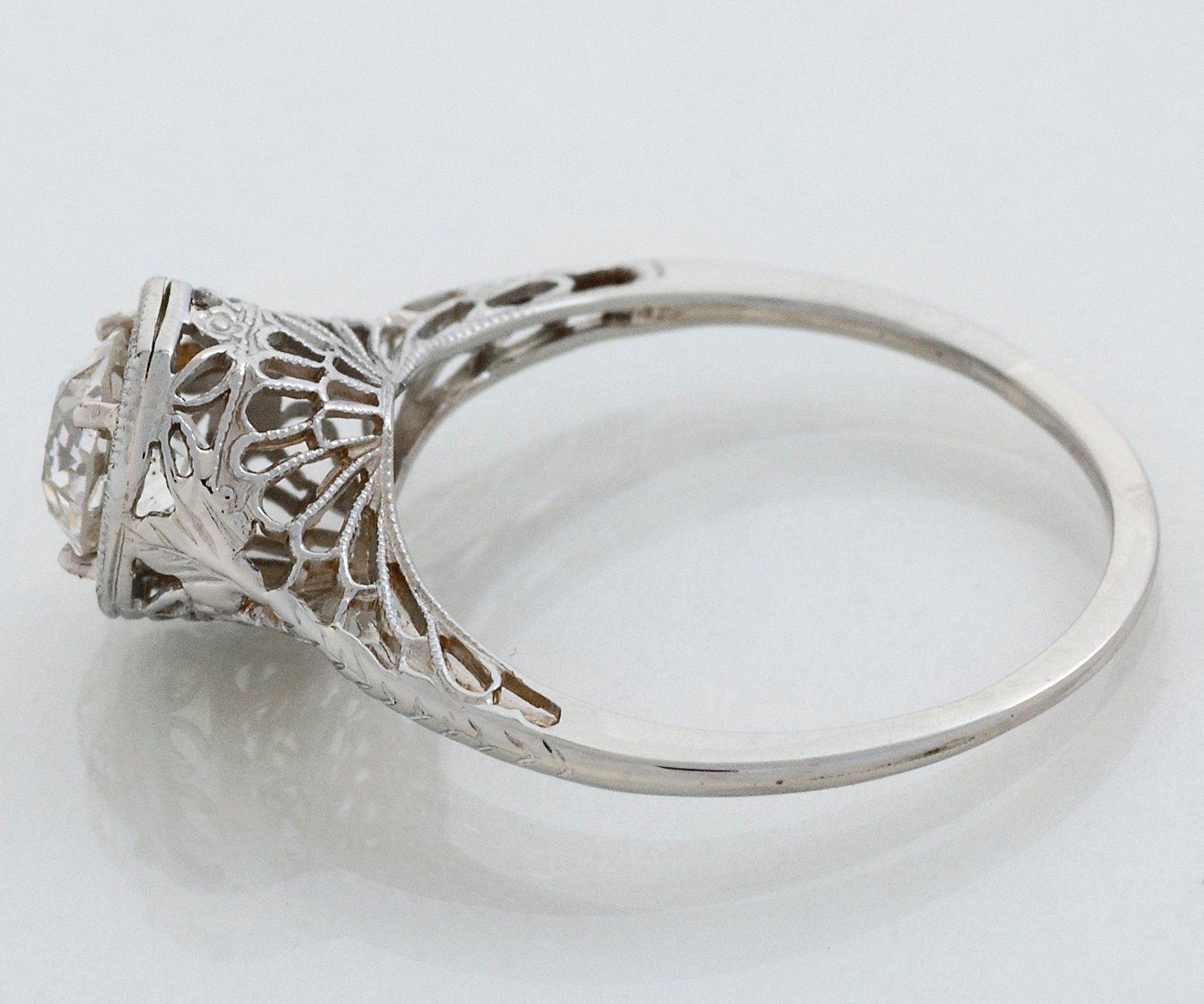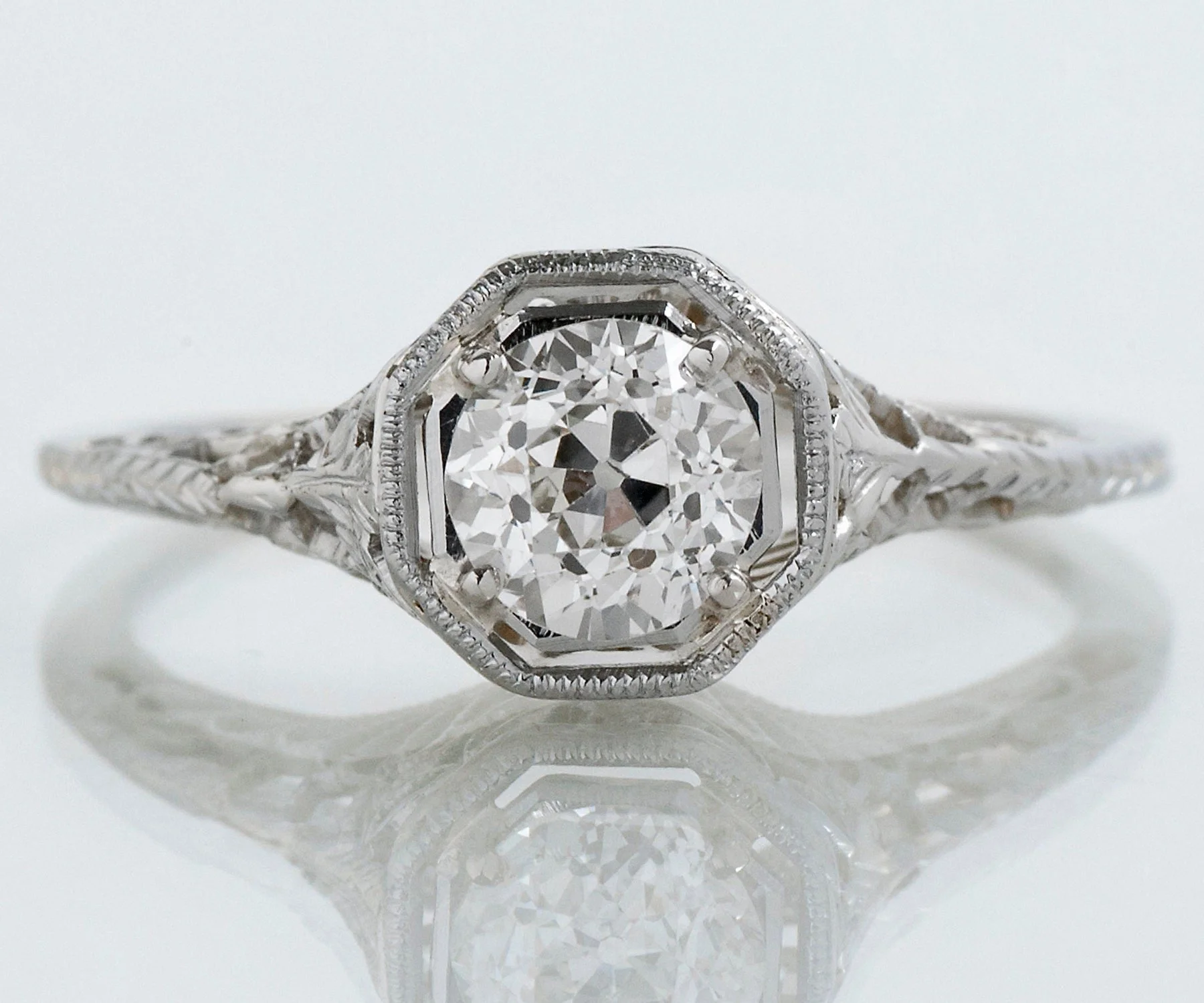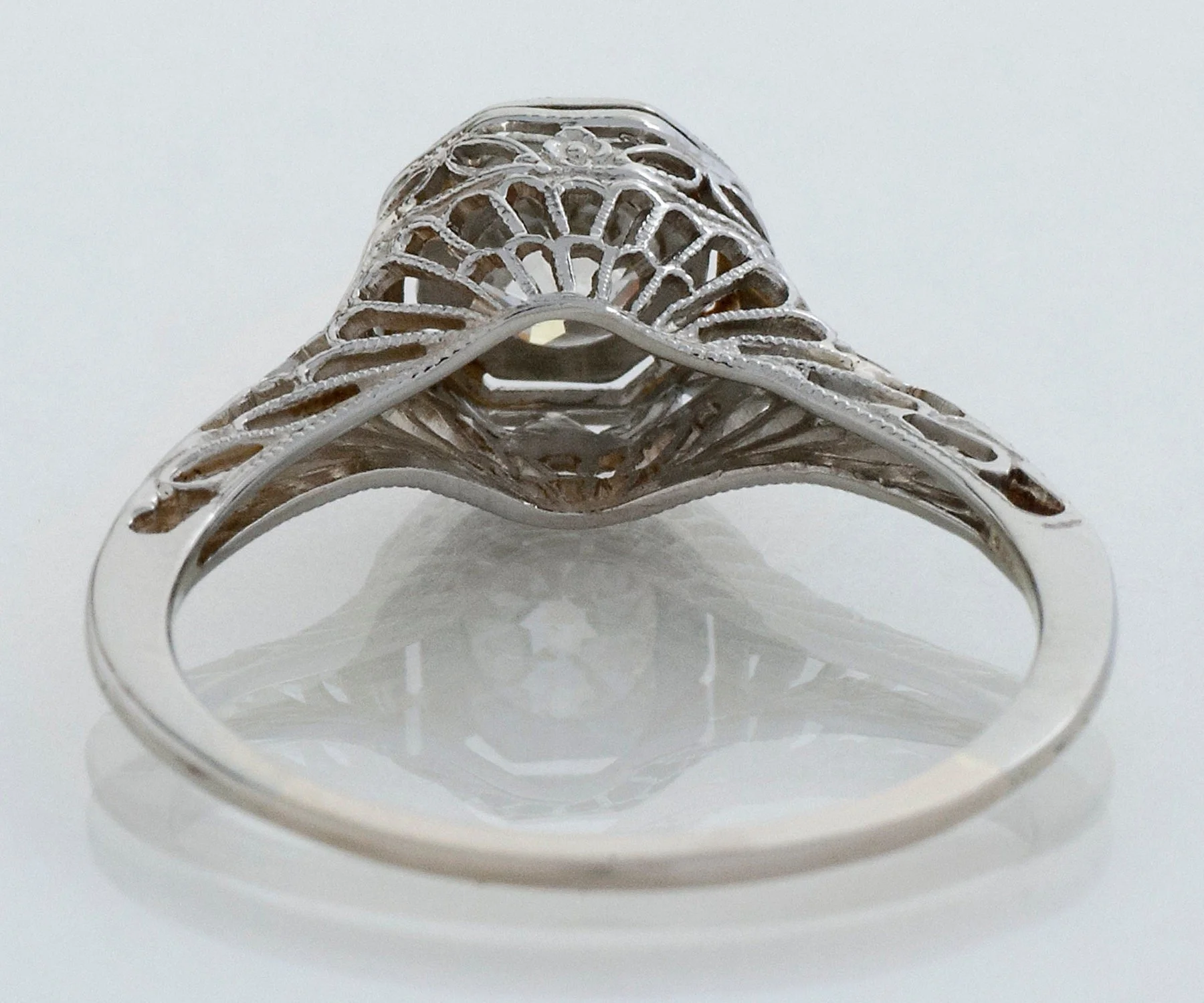 Antique Engagement Ring - Antique Edwardian 18k White Gold Diamond Engagement Ring 1910's 18k White Gold European Cut Diamond =.67ct VS2/H Ring Size 6.25 (ring is sizable) Ring measures approximately 7.6mm. Back of band measures .8mm in one direction and 1mm in the other direction.