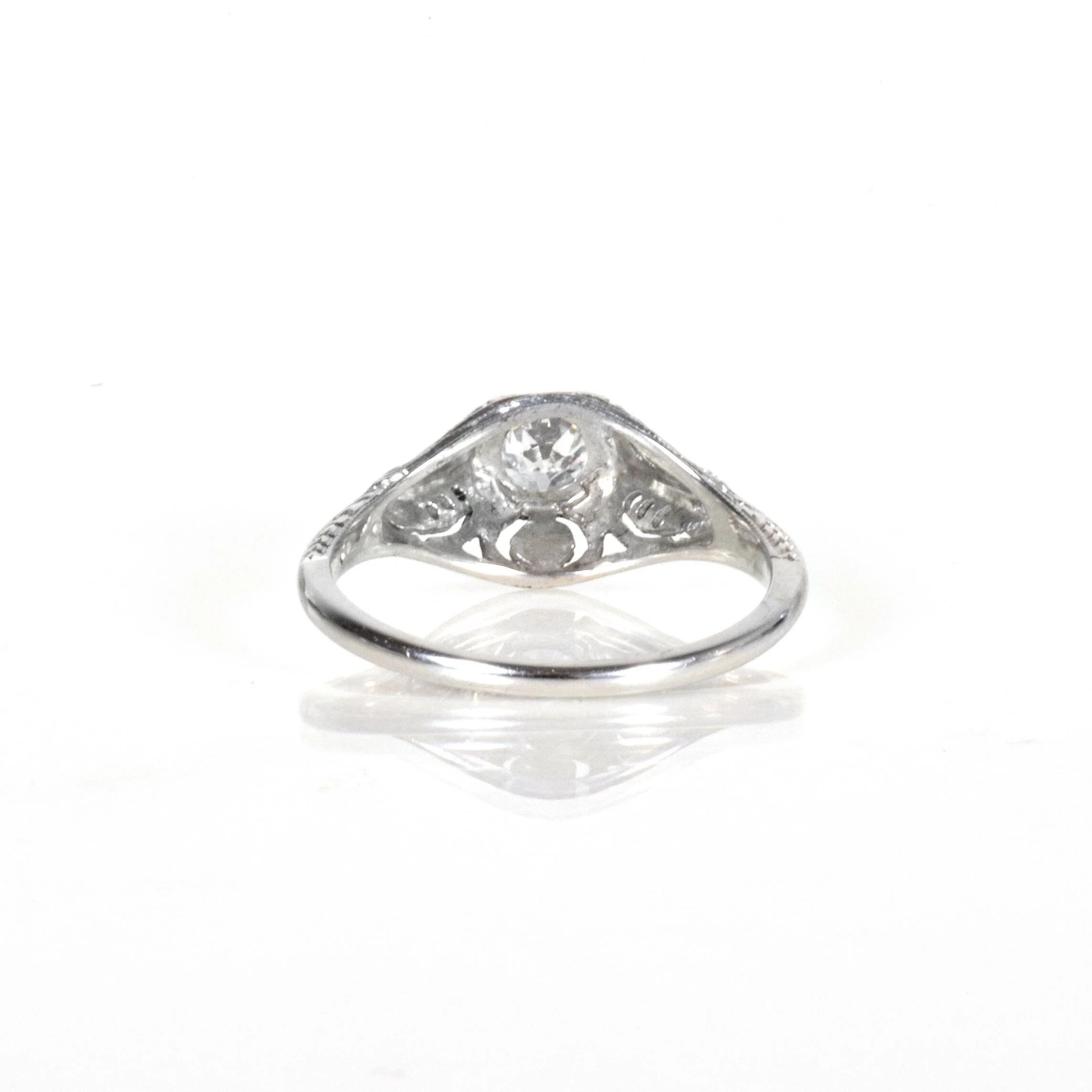Antique Engagement Ring - Antique Edwardian 18k White Gold Diamond Engagement Ring Circa 1910's 18k White Gold European Cut Diamond =.33ct VS2/F Ring Size 6 (sizable) Ring measures approximately 8.2mm wide at center, back of band is 1.3mm wide.