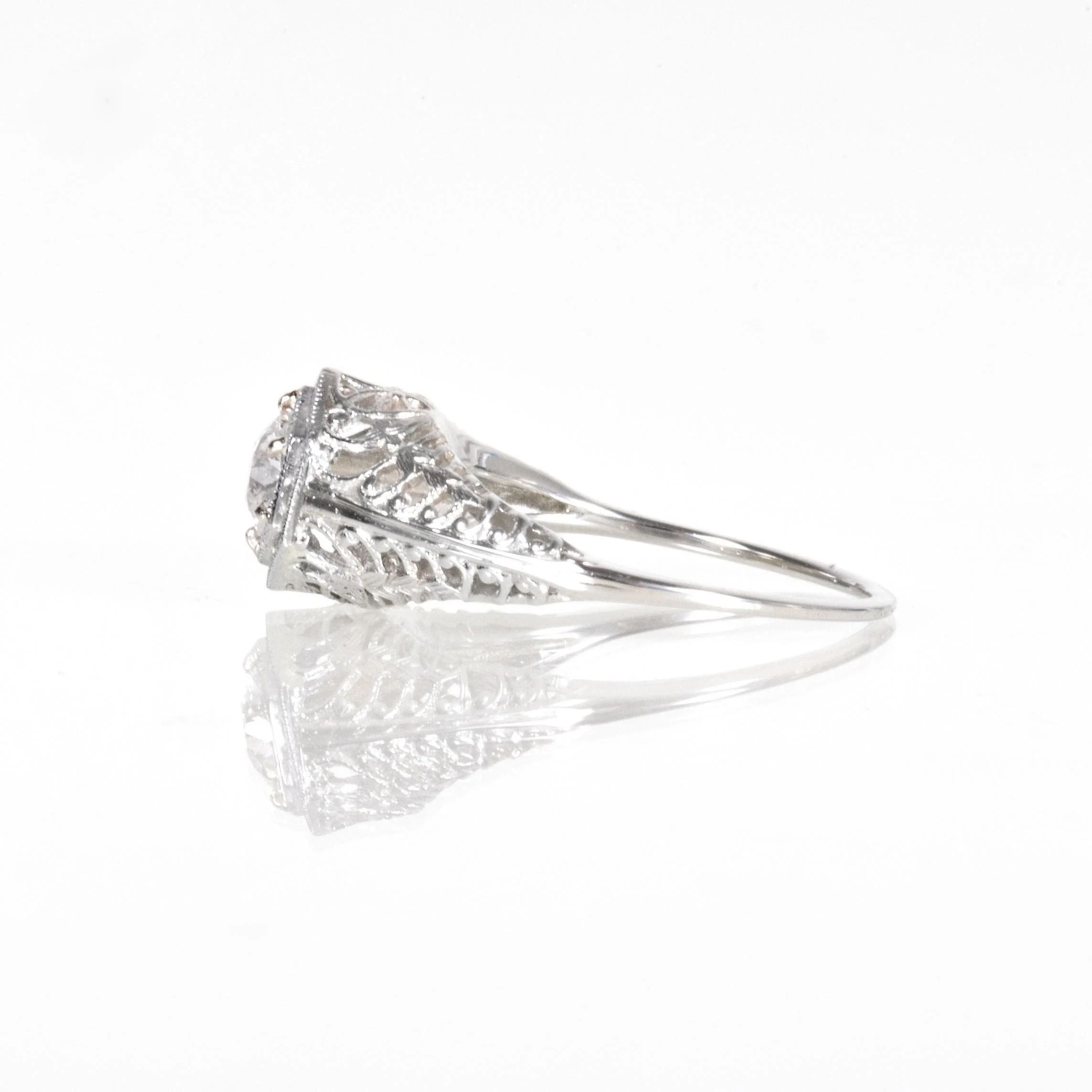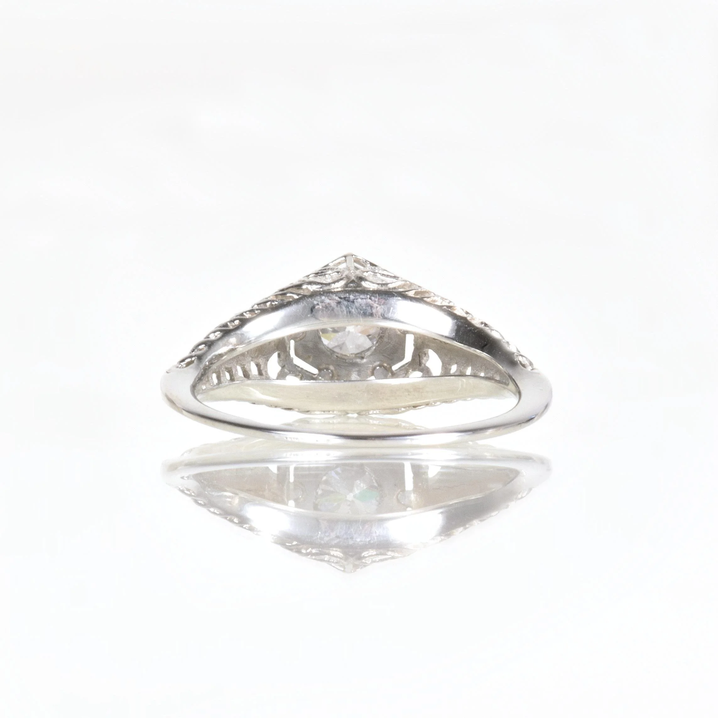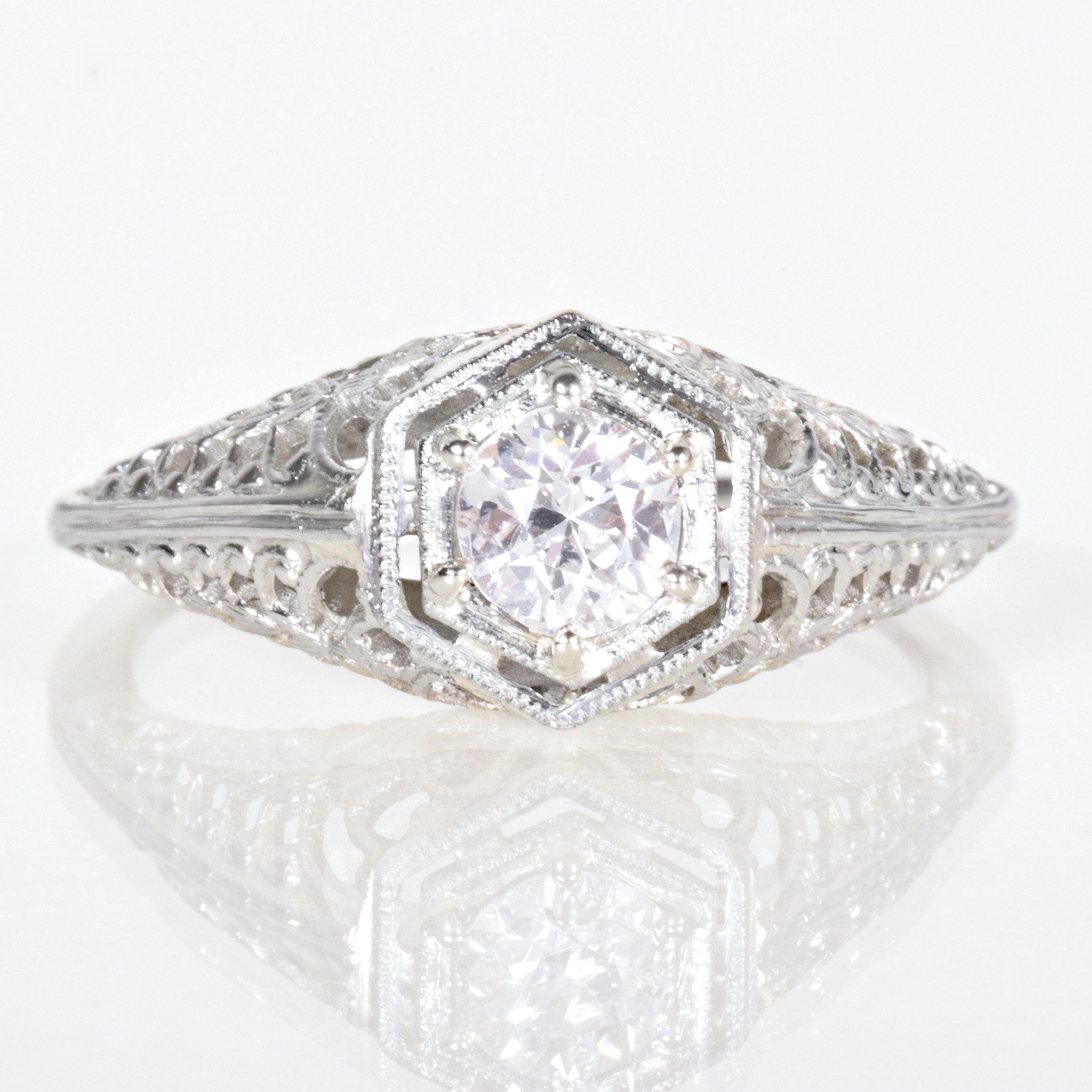 Antique Engagement Ring - Antique Edwardian 18k White Gold Diamond Engagement Ring Circa 1910's 18k White Gold European Cut Diamond =.31ct SI1/H Ring Size 5 (sizable) Ring measures approximately 8mm wide at center, back of band is .9mm and .8mm wide in each direction.