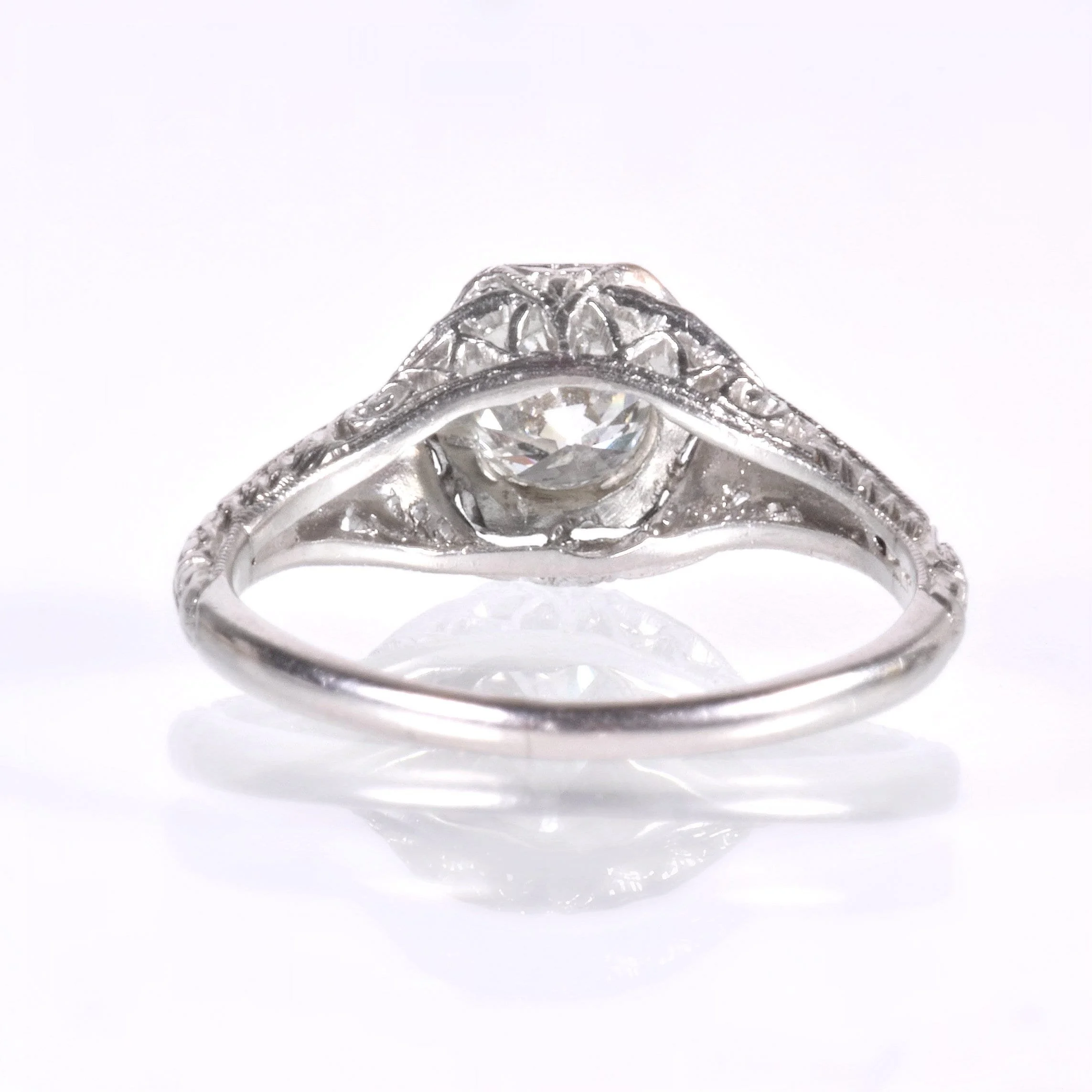 Antique Engagement Ring - Antique Edwardian 18k White Gold Diamond Engagement Ring Late 1910's 18k White Gold European Cut Diamond =.62ct SI1/H (GIA) Ring Size 5.25 (sizable) Ring measures approximately 8mm tall at center, back of band is 1.5mm wide.
