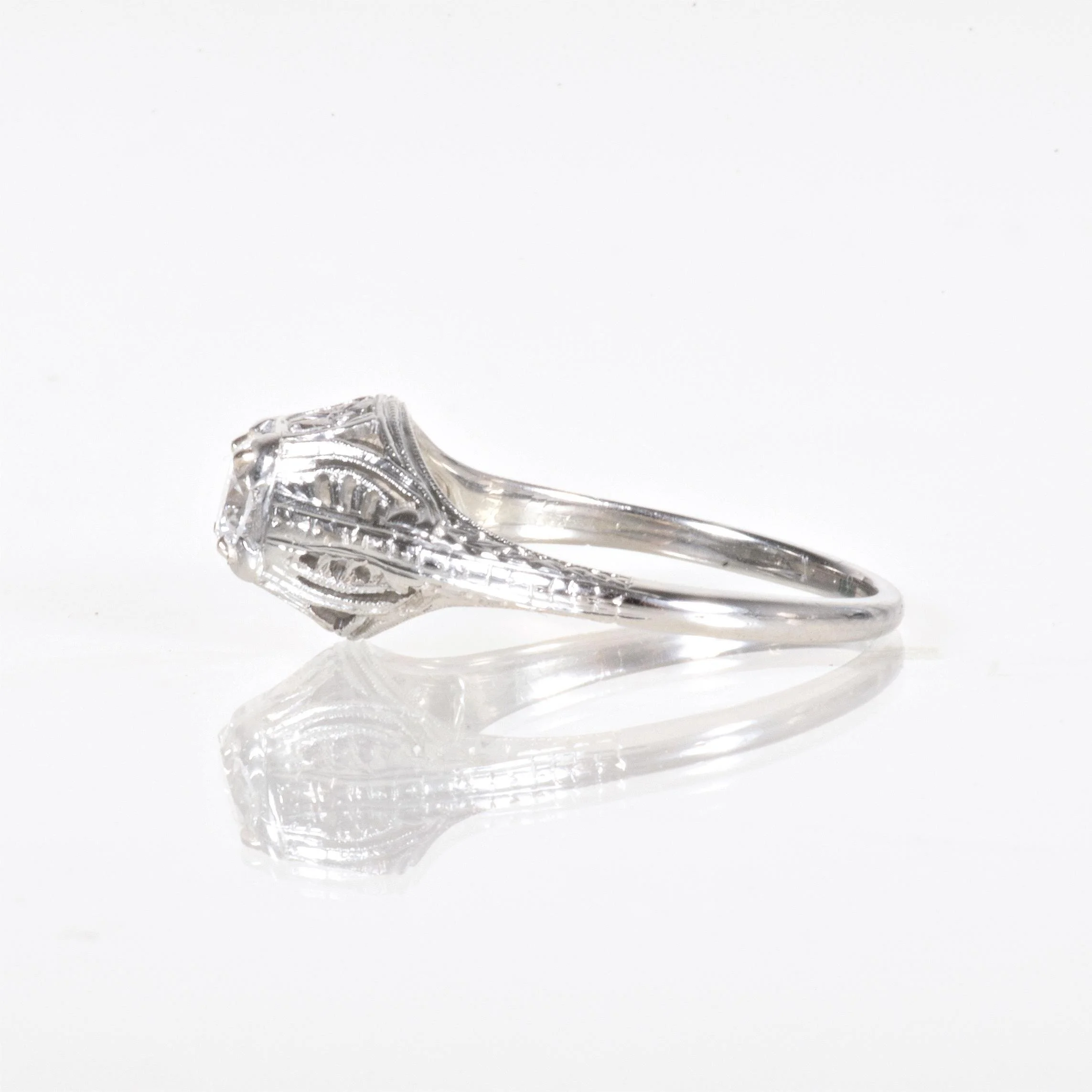 Antique Engagement Ring - Antique Edwardian 18k White Gold Diamond Engagement Ring Circa 1910's 18k White Gold European Cut Diamond =.33ct VS2/F Ring Size 6 (sizable) Ring measures approximately 8.2mm wide at center, back of band is 1.3mm wide.