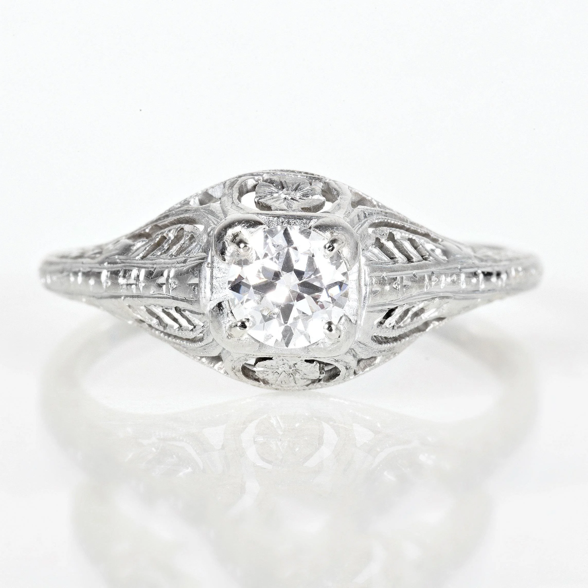 Antique Engagement Ring - Antique Edwardian 18k White Gold Diamond Engagement Ring
