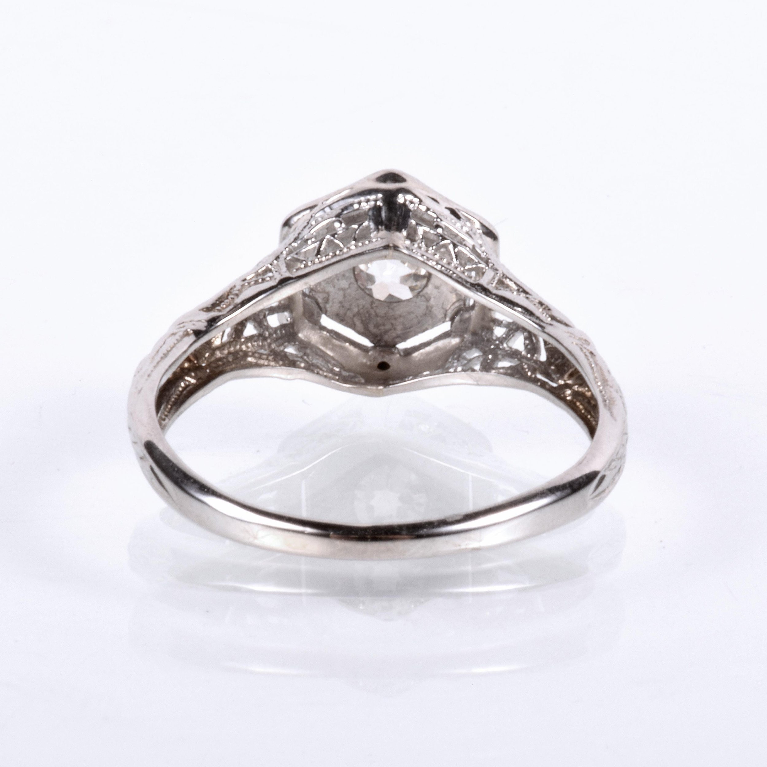 Antique Engagement Ring - Antique Edwardian 18k White Gold Diamond Engagement Ring 18k White Gold Edwardian European Cut Diamond =.42ct SI1/E Ring Size 6 (sizable) Ring measures approximately 9.5mm at center, back of band is 1.7mm wide.