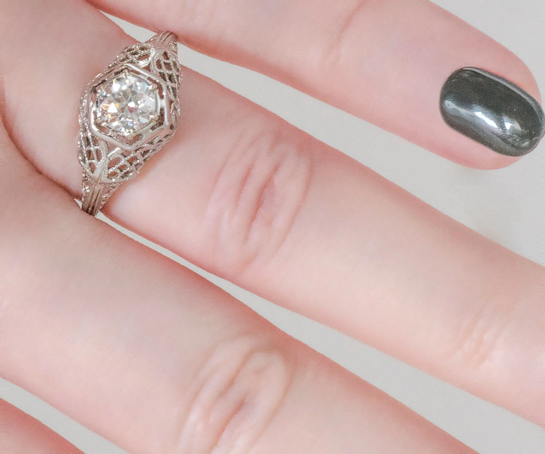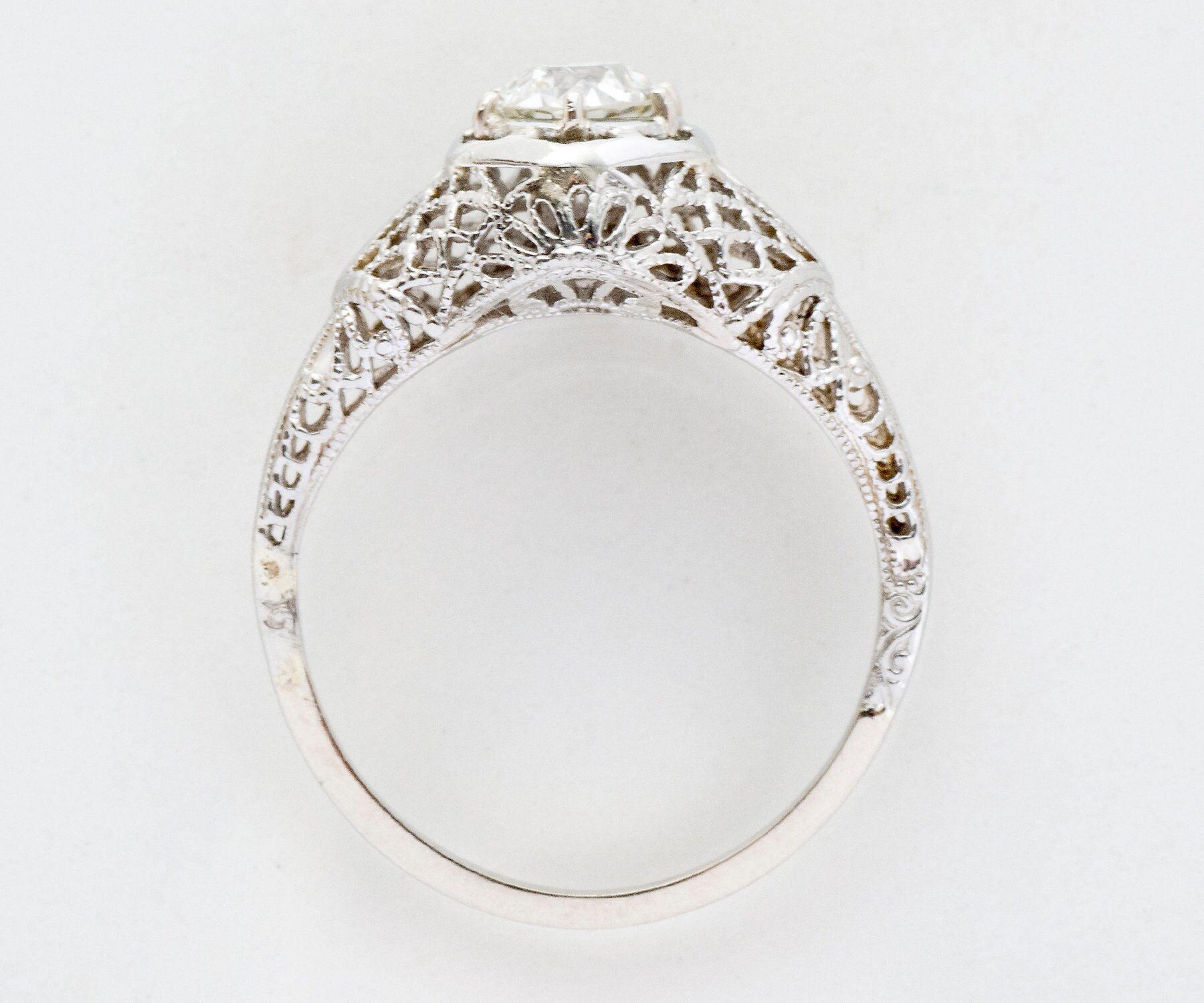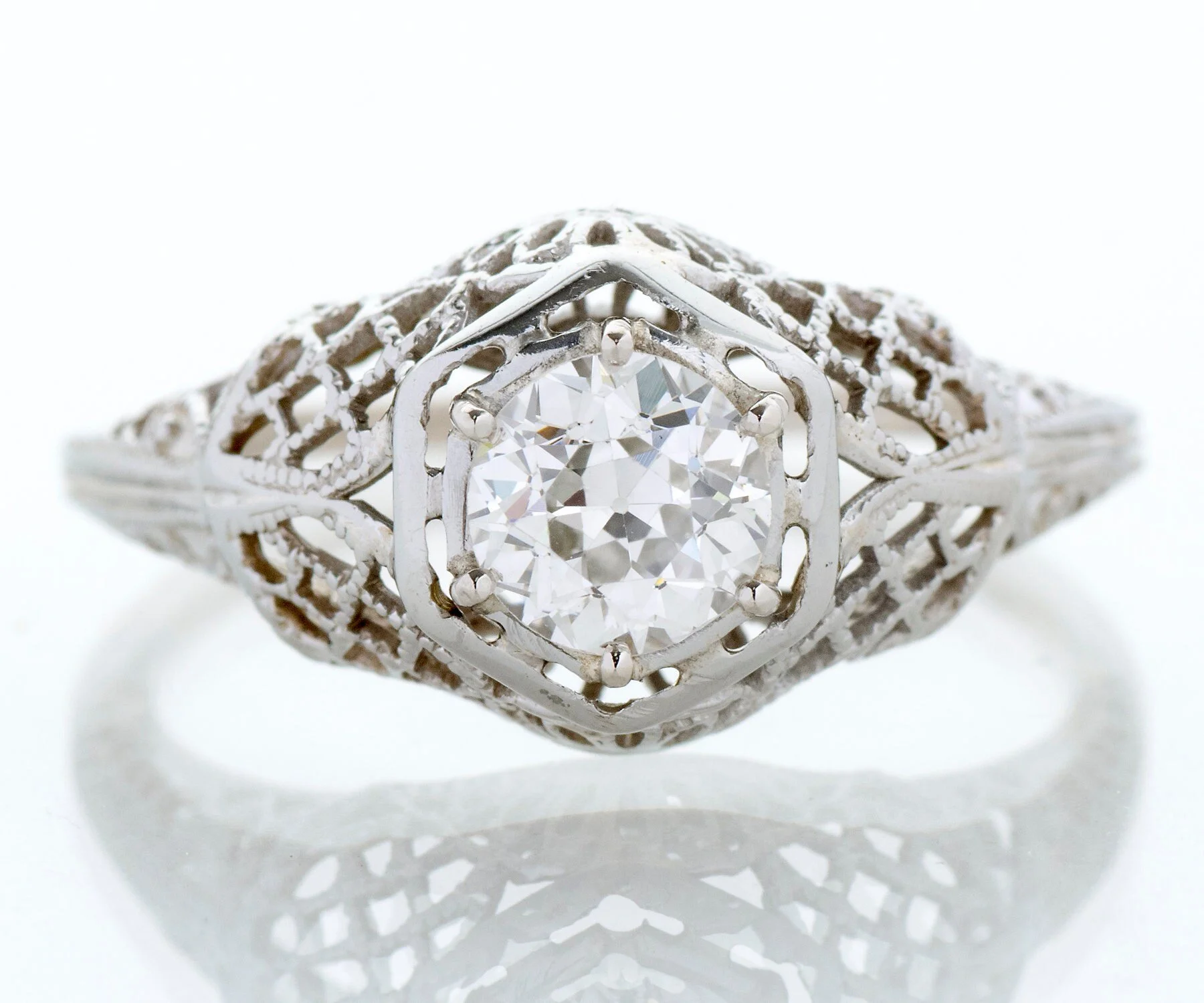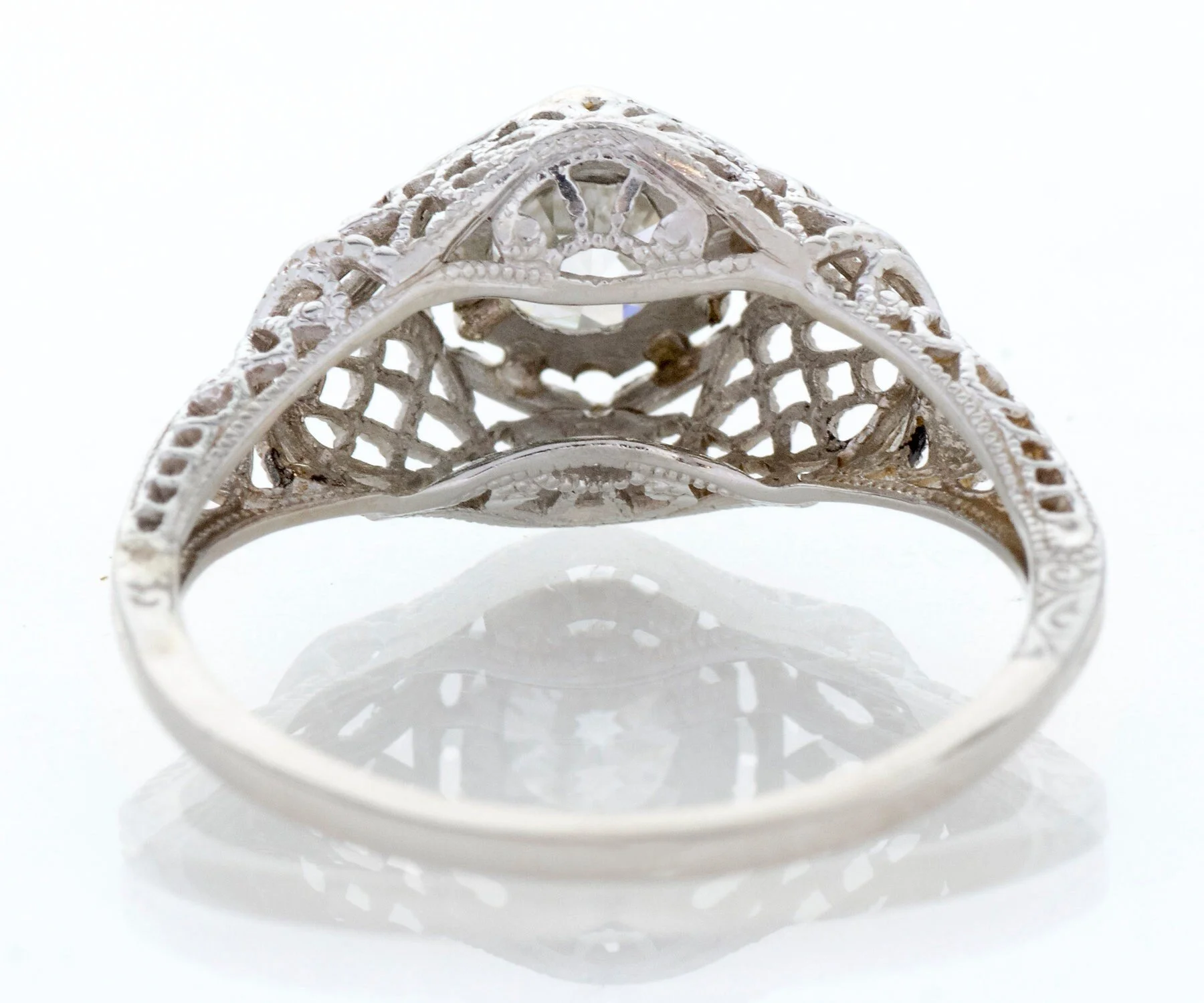 Antique Engagement Ring - Antique Edwardian 18k White Gold Diamond Engagement Ring 1910's 18k White Gold European Cut Diamonds =.66ct VS1/H Ring Size 7 (sizable) Ring measures approximately 9.8mm at center, back of band is 1.2mm wide.