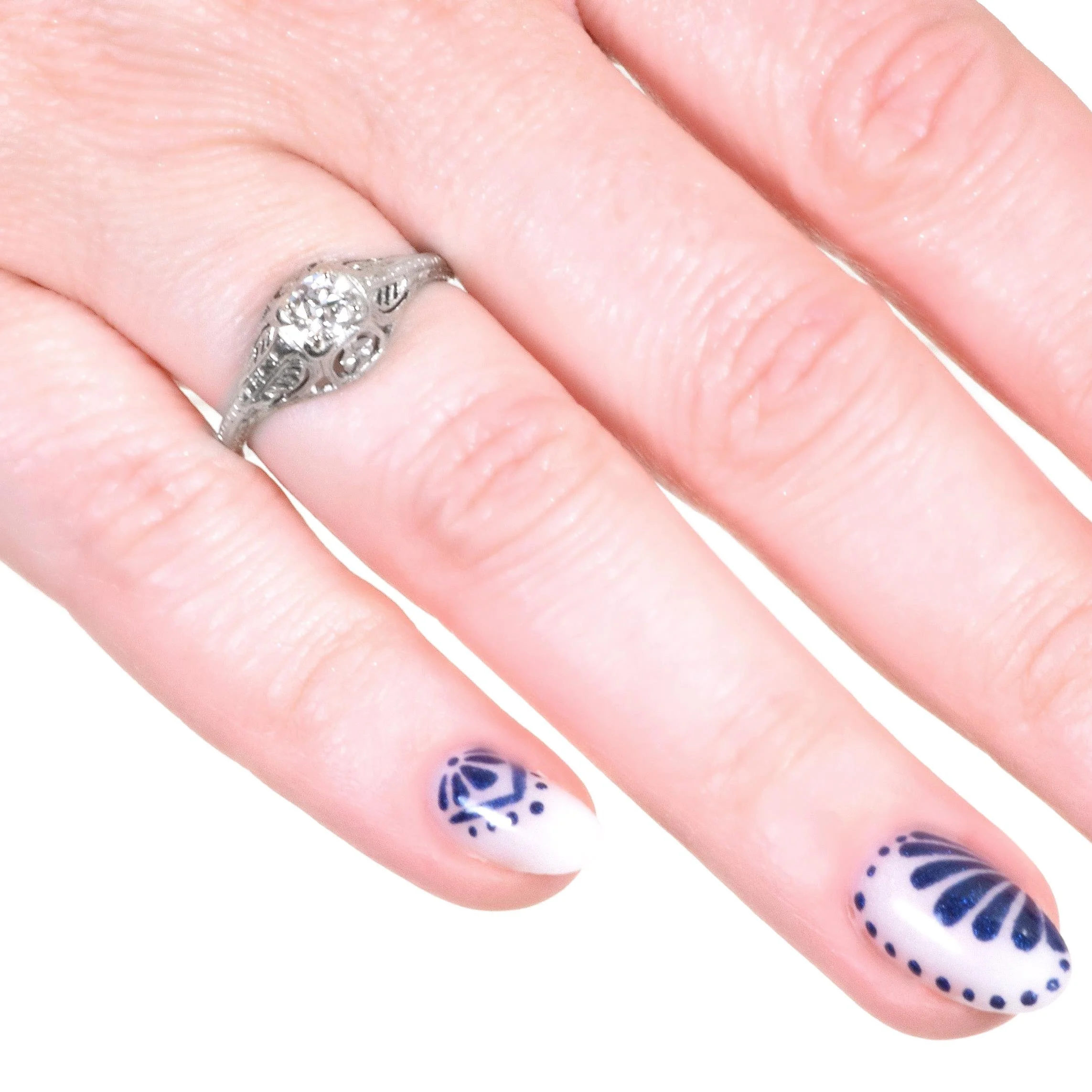 Antique Engagement Ring - Antique Edwardian 18k White Gold Diamond Engagement Ring Circa 1910's 18k White Gold European Cut Diamond =.33ct VS2/F Ring Size 6 (sizable) Ring measures approximately 8.2mm wide at center, back of band is 1.3mm wide.