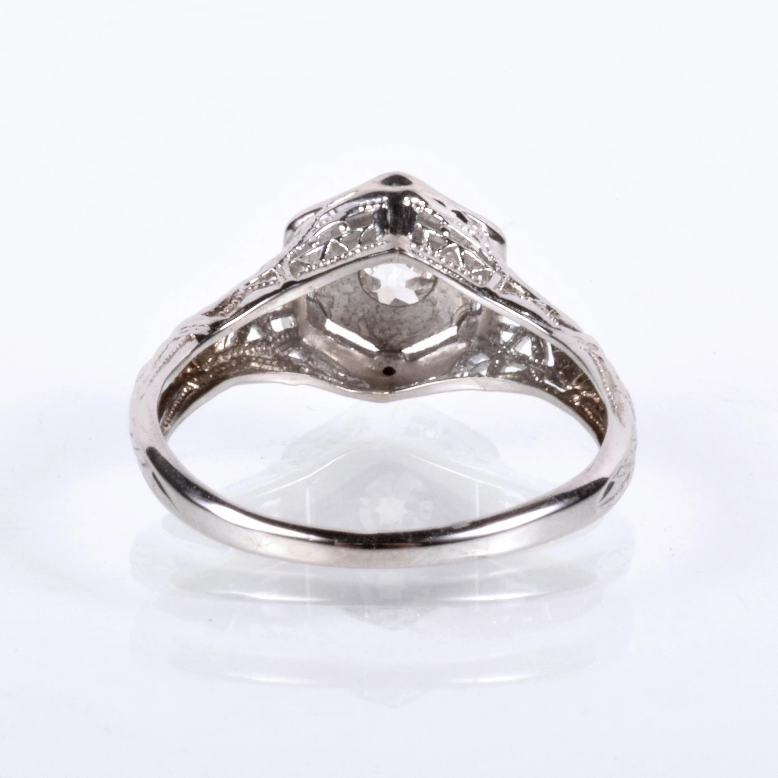 Antique Engagement Ring - Antique Edwardian 18k White Gold Diamond Engagement Ring 18k White Gold Edwardian European Cut Diamond =.42ct SI1/E Ring Size 6 (sizable) Ring measures approximately 9.5mm at center, back of band is 1.7mm wide.