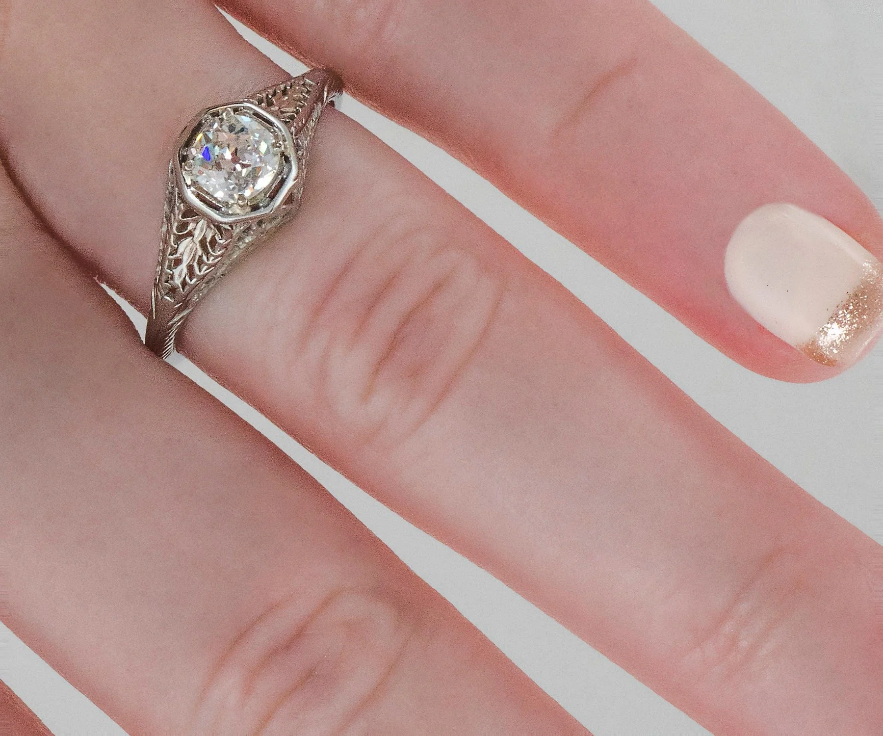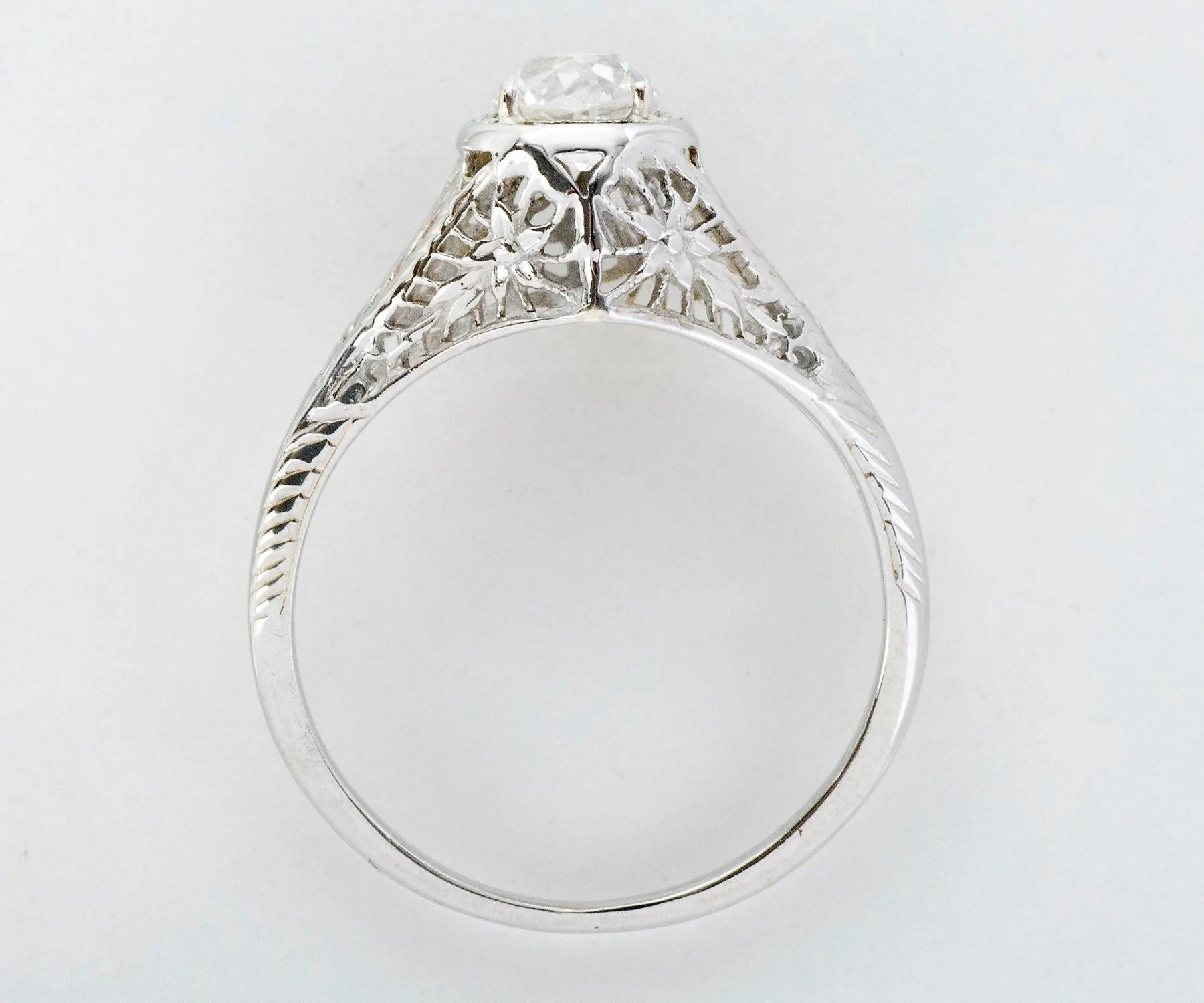 Antique Engagement Ring - Antique Edwardian 18k White Gold Diamond Engagement Ring 1910's 18k White Gold European Cut Diamond =.54ct VS1/F Ring Size 6.5 (ring is sizable) Ring measures approximately 8mm at center, back of band is 1.5mm wide.