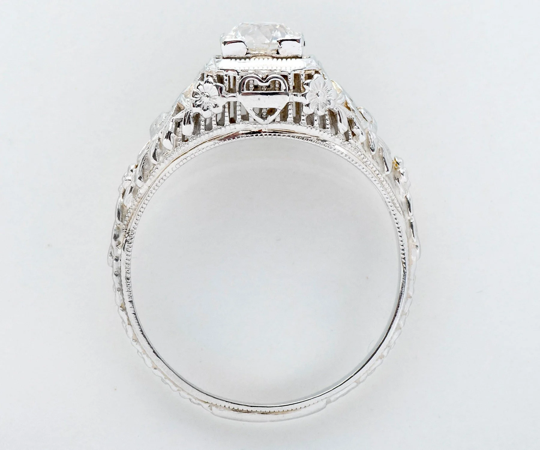 Antique Engagement Ring - Antique Edwardian 18k White Gold Diamond Engagement Ring 1910's 18k White Gold European Cut Diamond =.60ct SI1/F Ring Size 6.5 (ring is sizable) Ring measures approximately 8.2mm at center, back of band is 1.7mm wide.