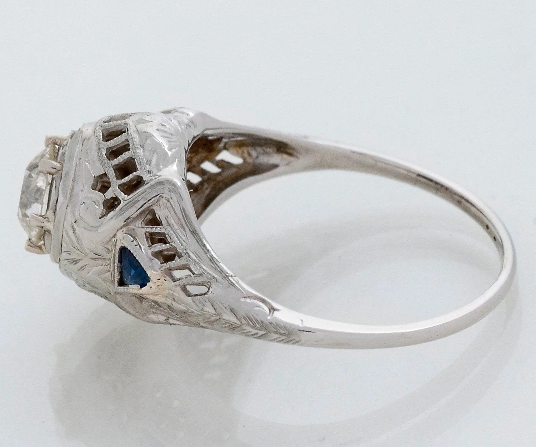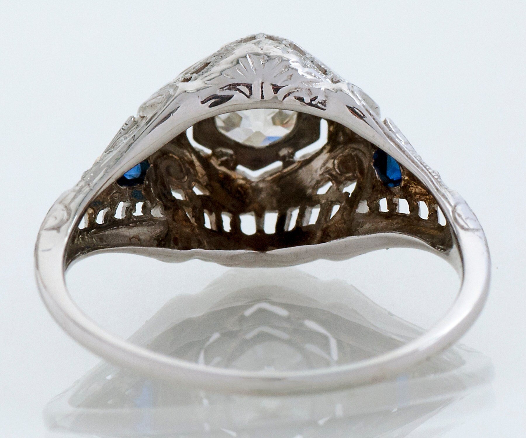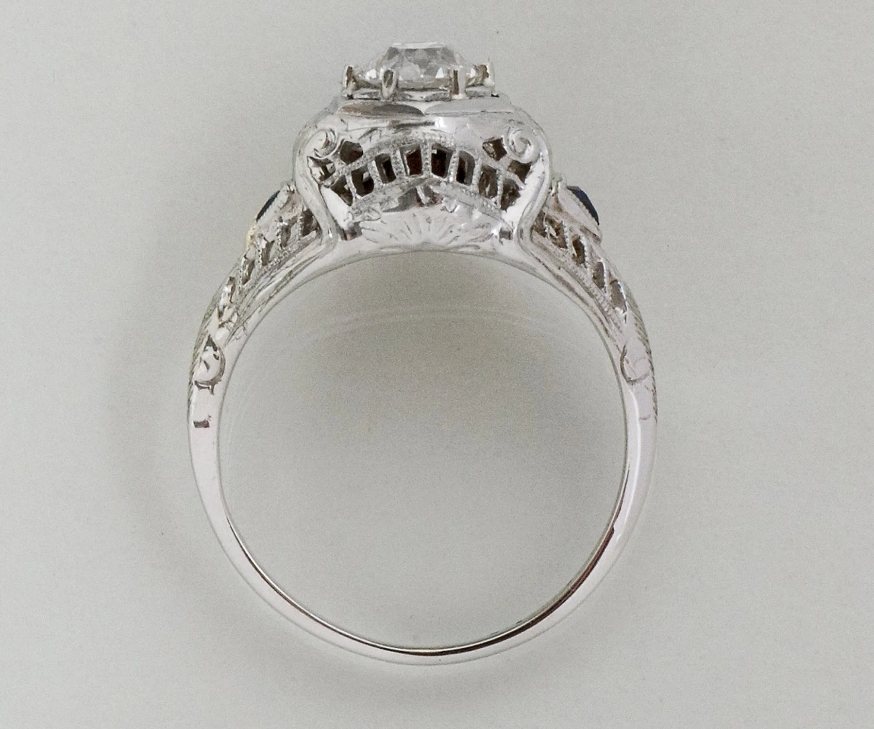 Antique Engagement Ring - Antique Edwardian 18k White Gold Diamond & Sapphire Engagement Ring