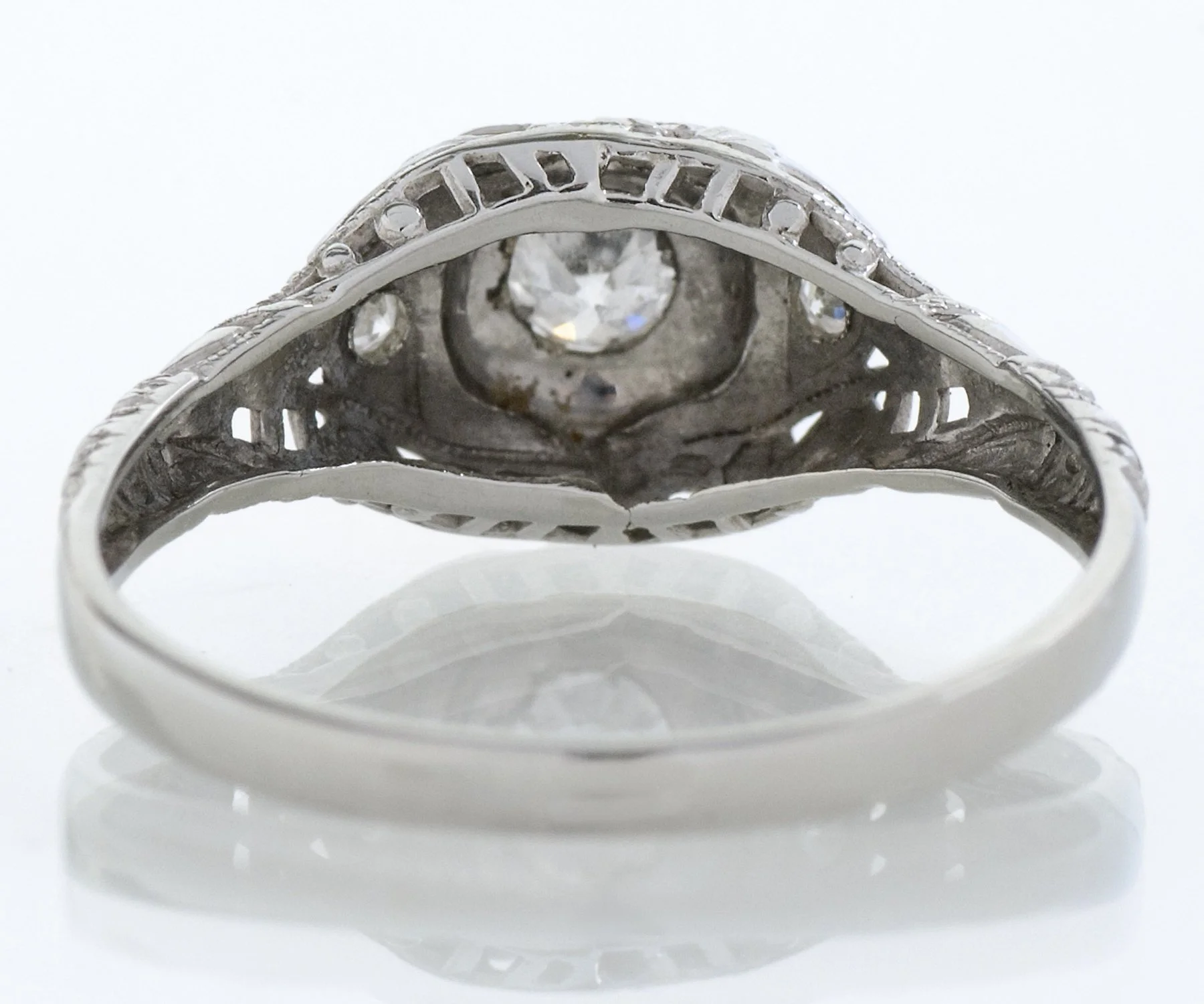Antique Engagement Ring - Antique Edwardian 18k White Gold Filigree Diamond Engagement Ring