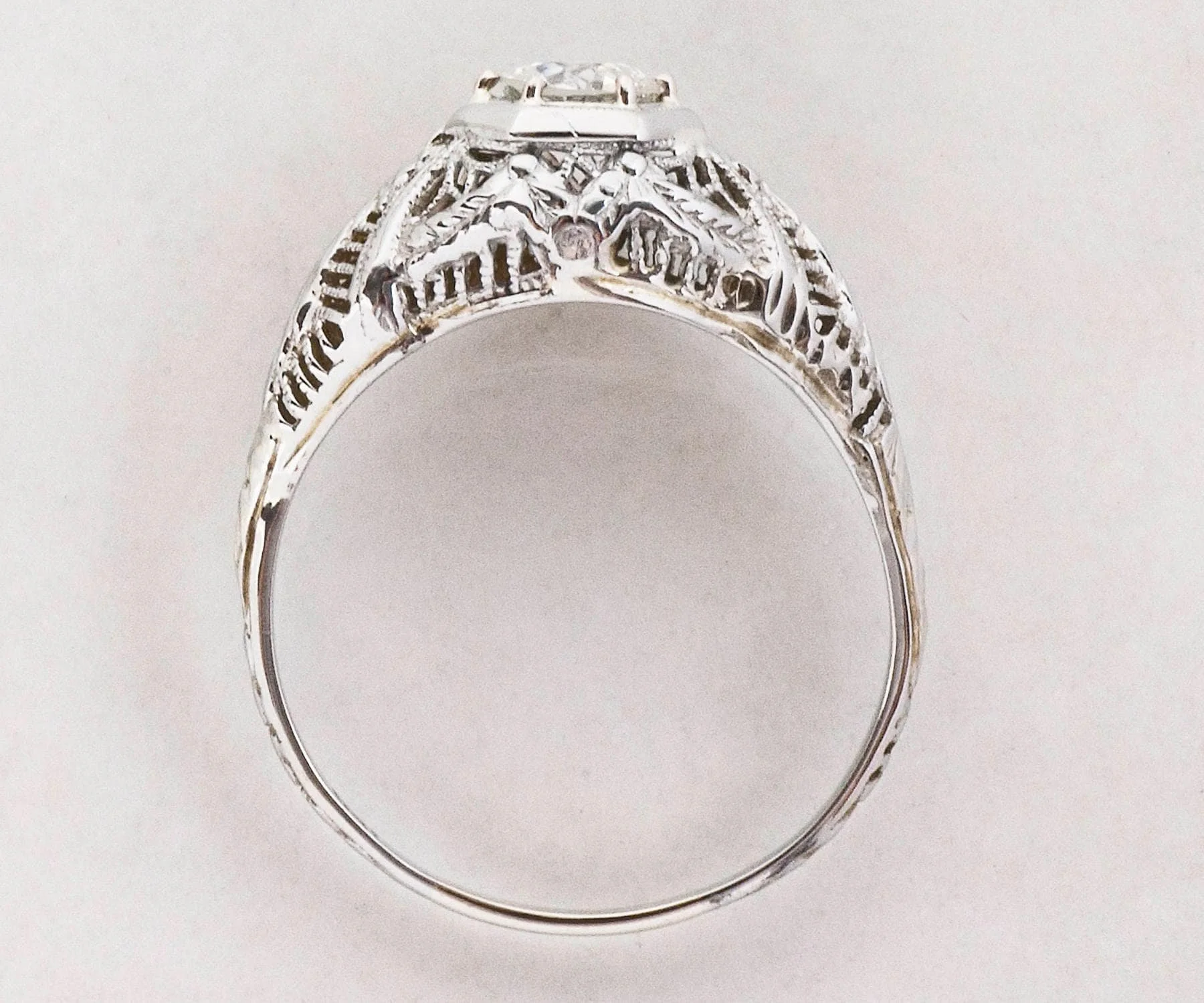 Antique Engagement Ring - Antique Edwardian 18k White Gold Filigree Diamond Engagement Ring Edwardian Filigree 18k White Gold European Cut Diamond =.38ct VS2/H Ring Size 7 (ring is sizable) Ring measures approximately 8.9mm wide at center, back of band is 1.5mm wide.